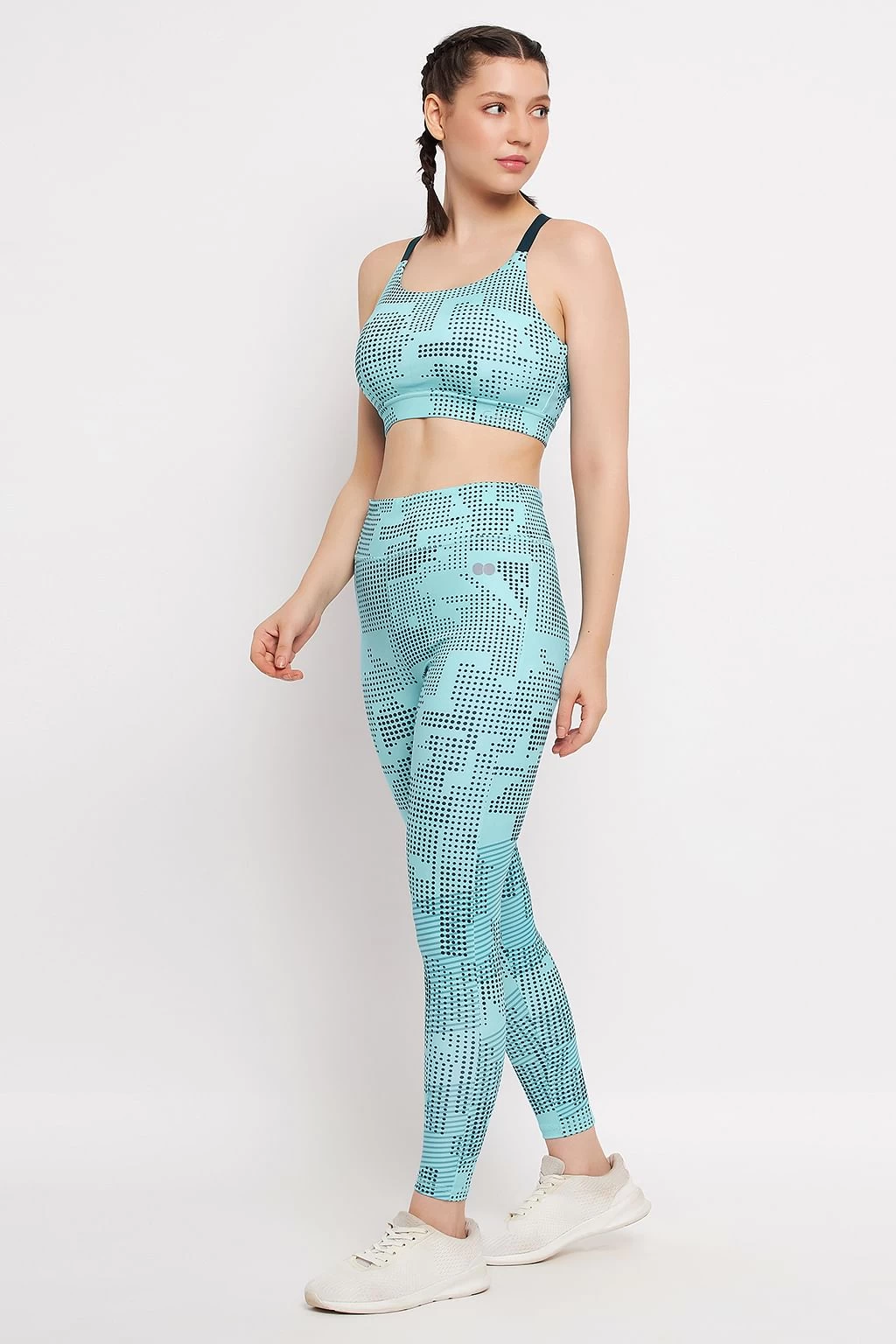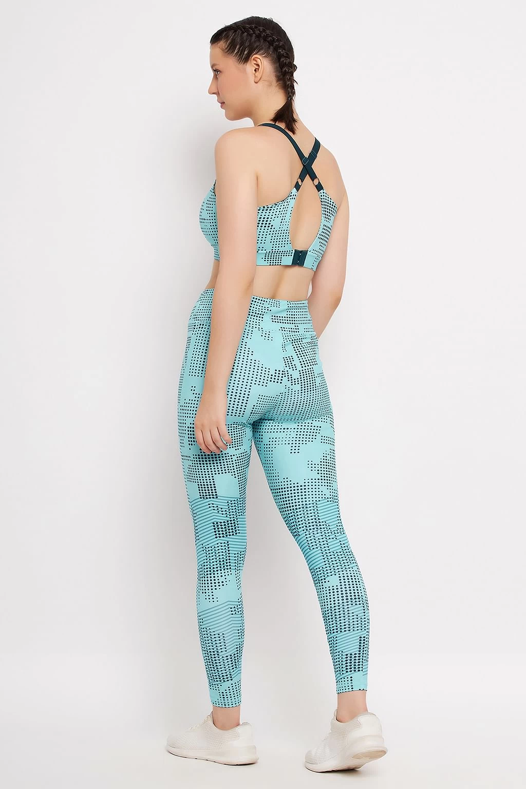 Sky blue printed sports bra & tights set.