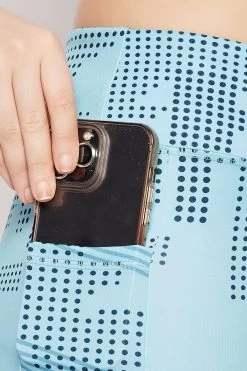 Medium Impact Padded Printed Sports Bra & High Rise Active Tights With Side Pocket In Sky Blue
