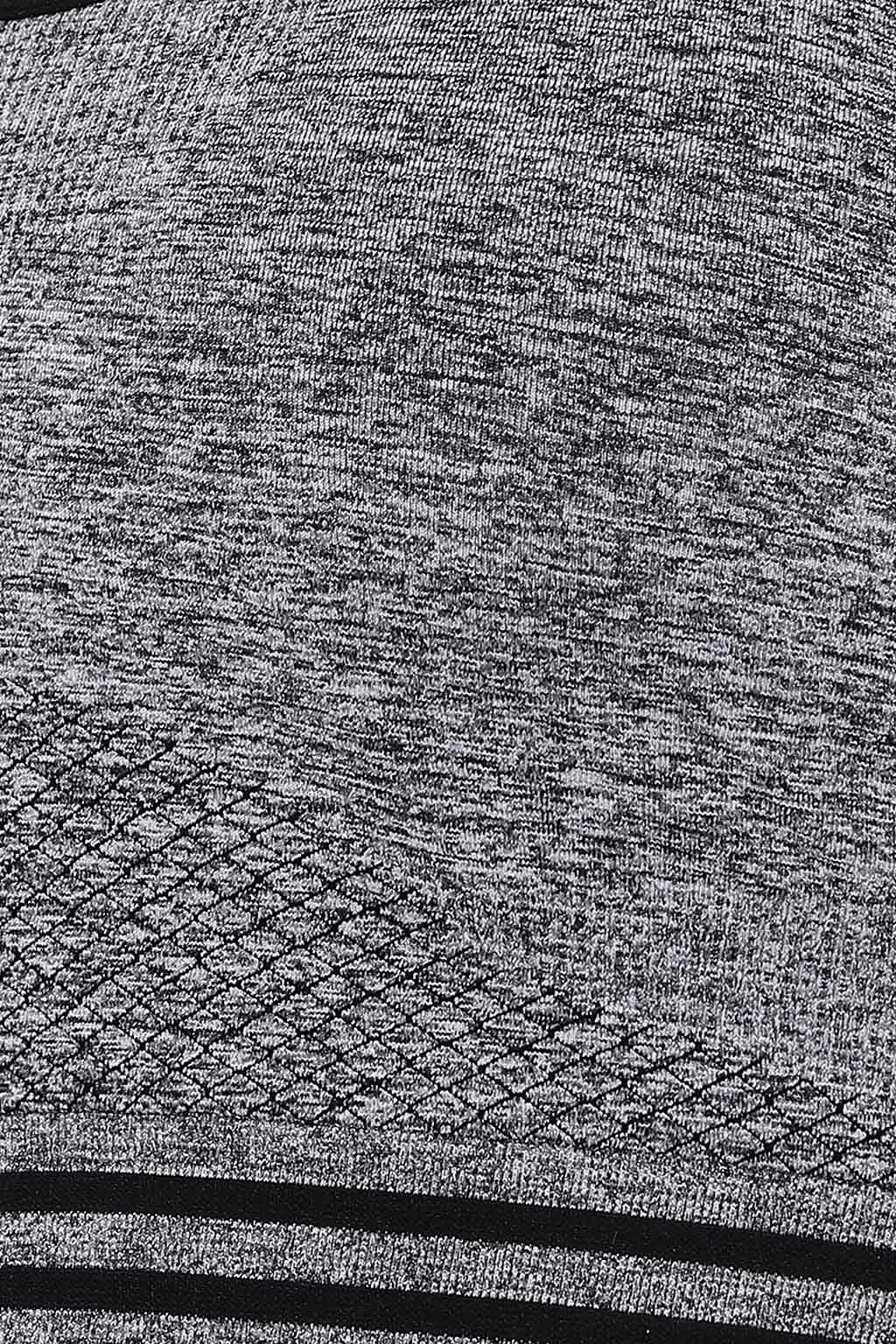 Grey melange sports bra crafted with soft moisture-wicking polyester spandex fabric.