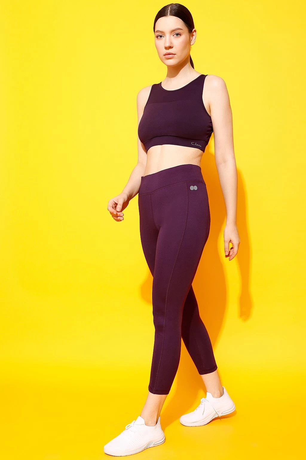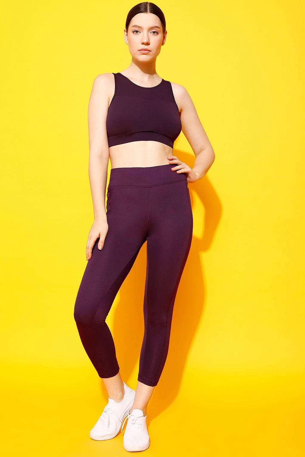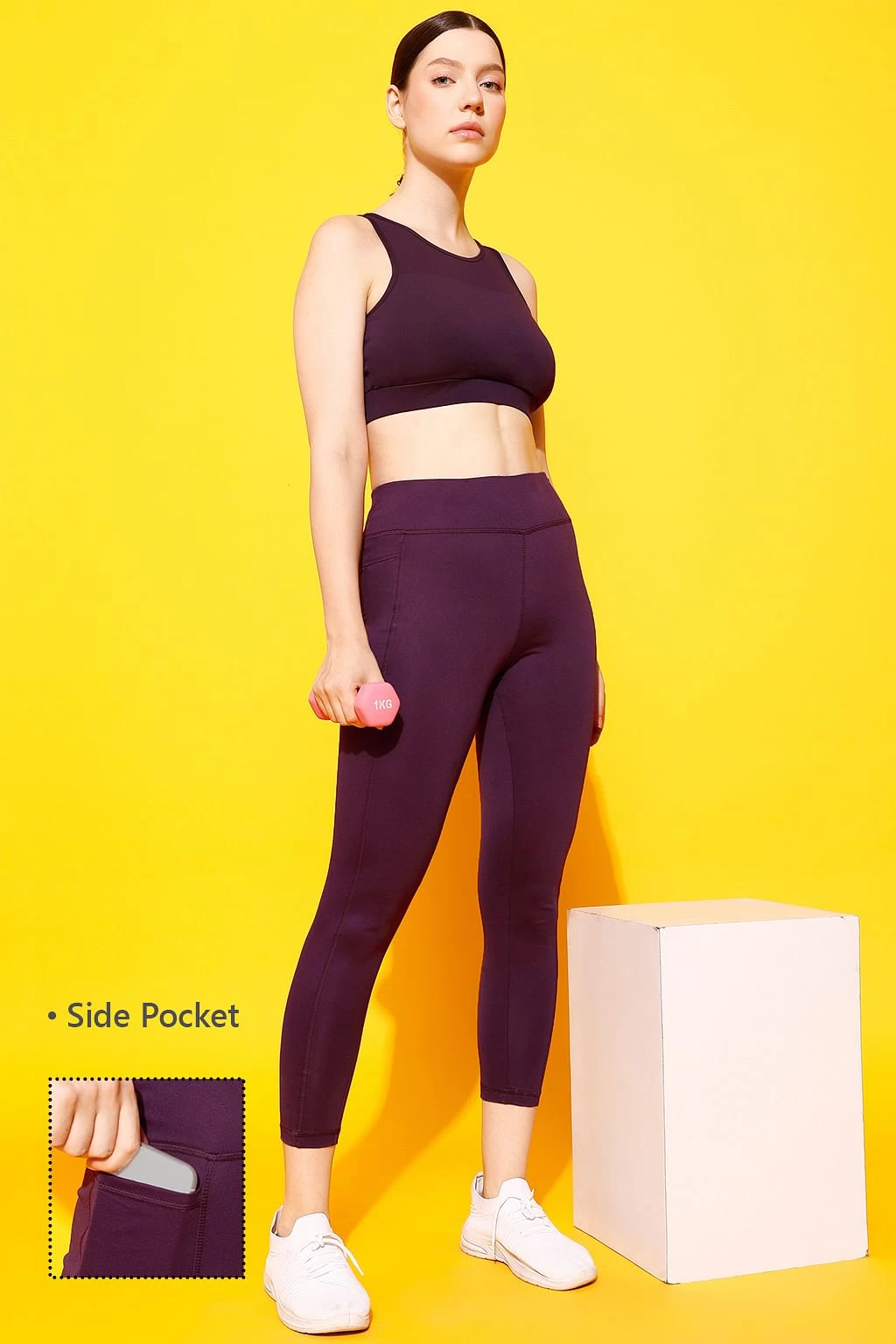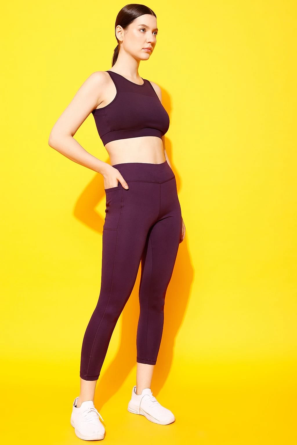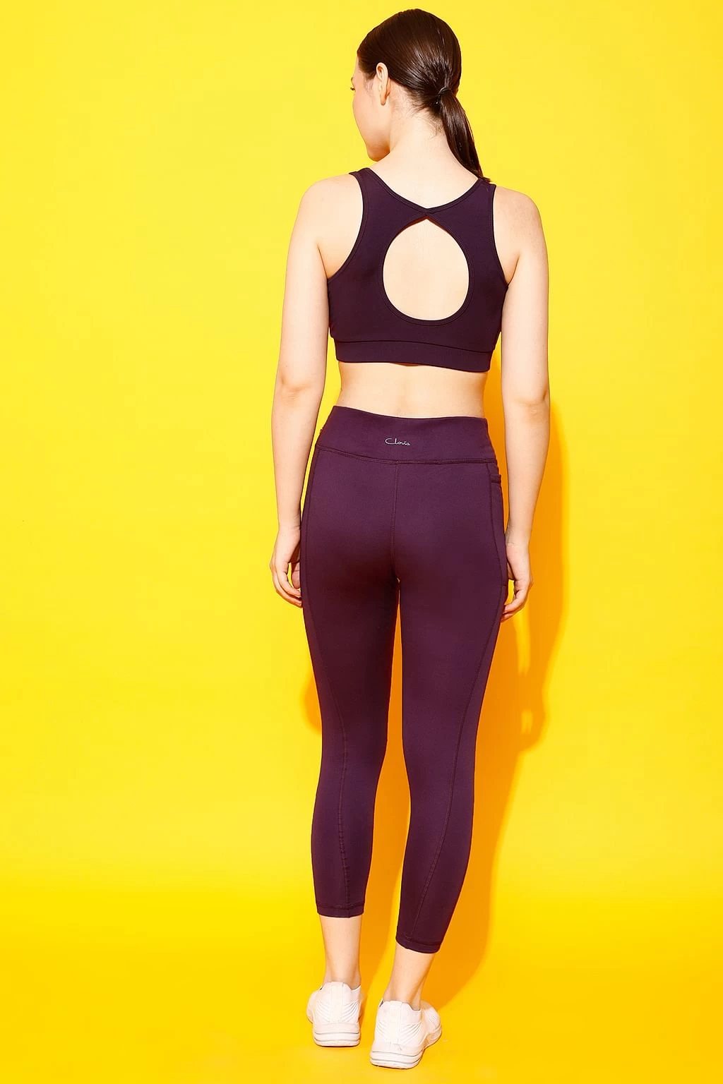 Medium Impact Padded Sports Bra & High Rise Active Tights With Side Pocket In Violet