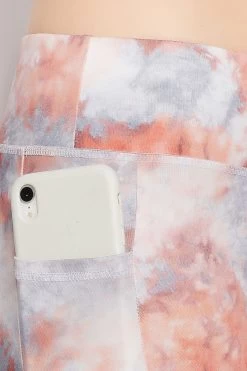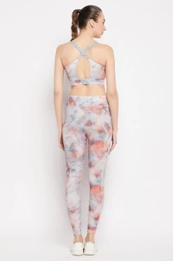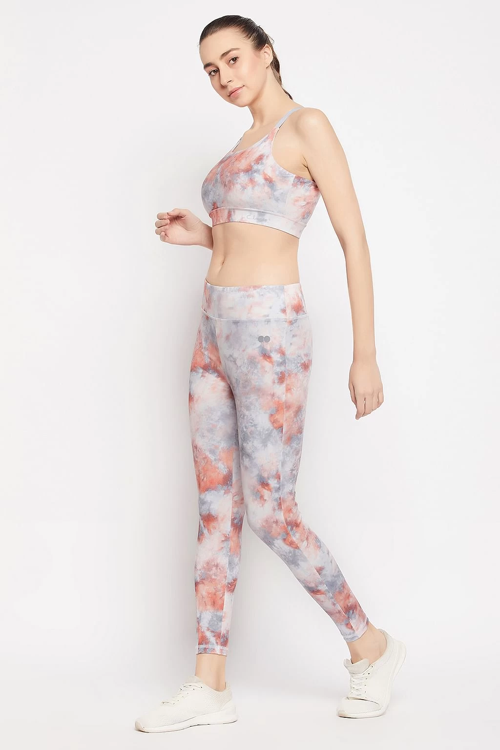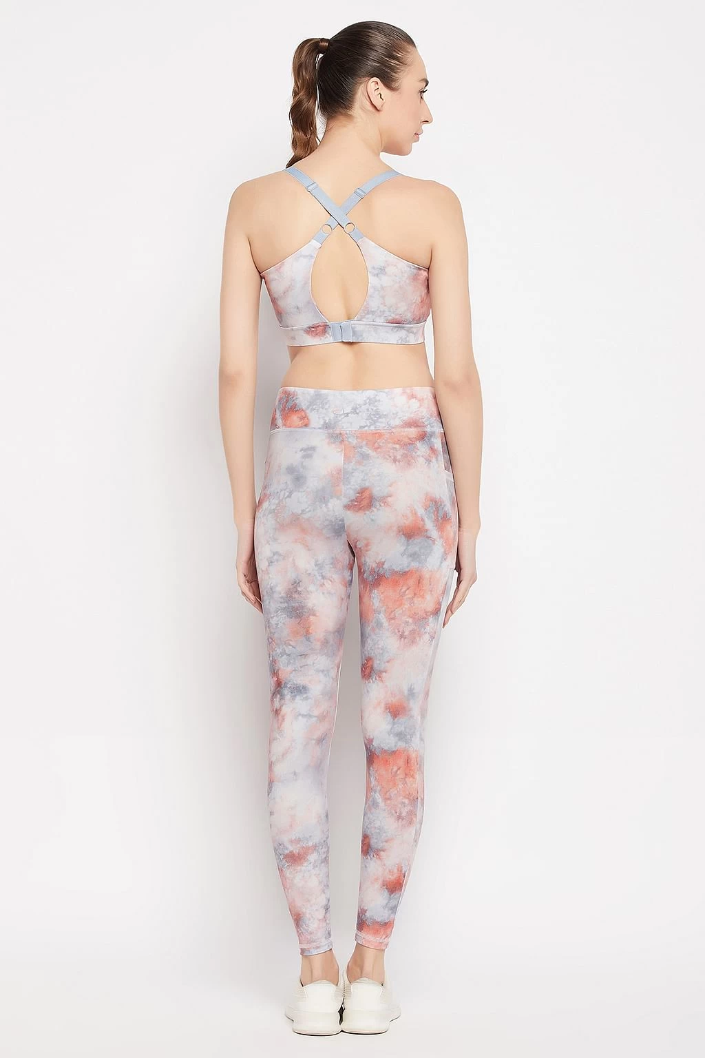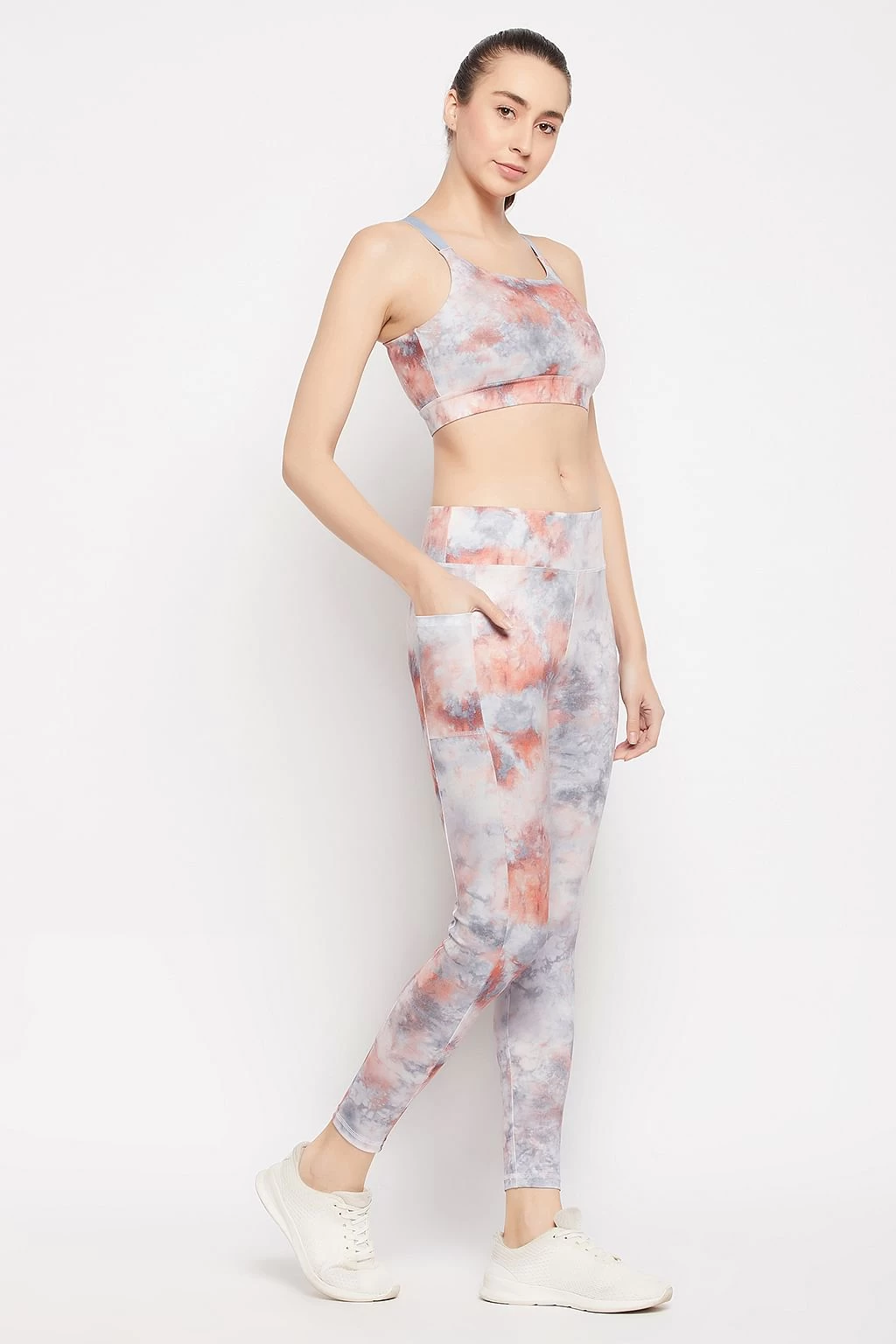 Medium Impact Padded Tie-Dye Print Sports Bra & High Rise Active Tights With Side Pocket In Grey
