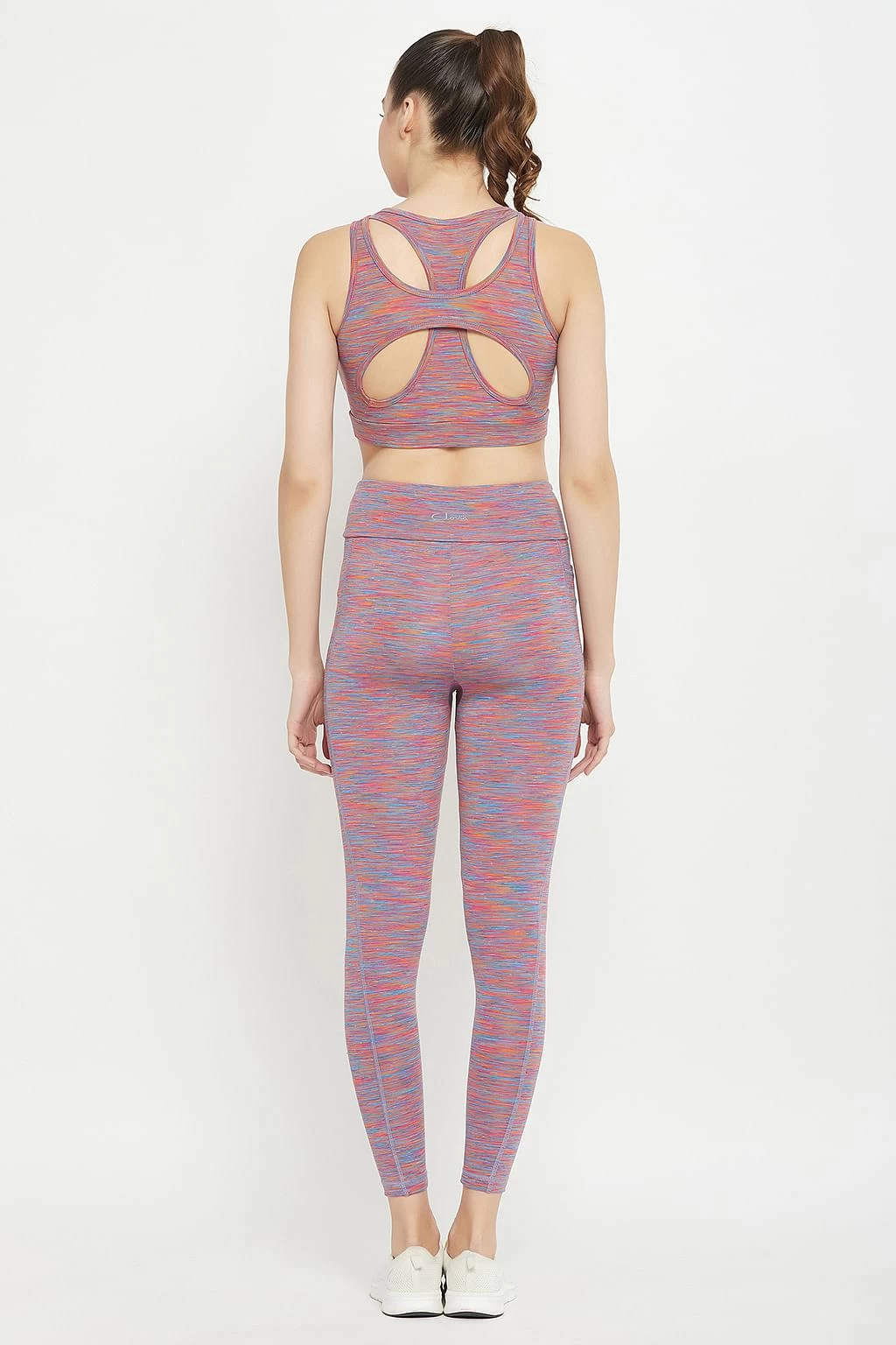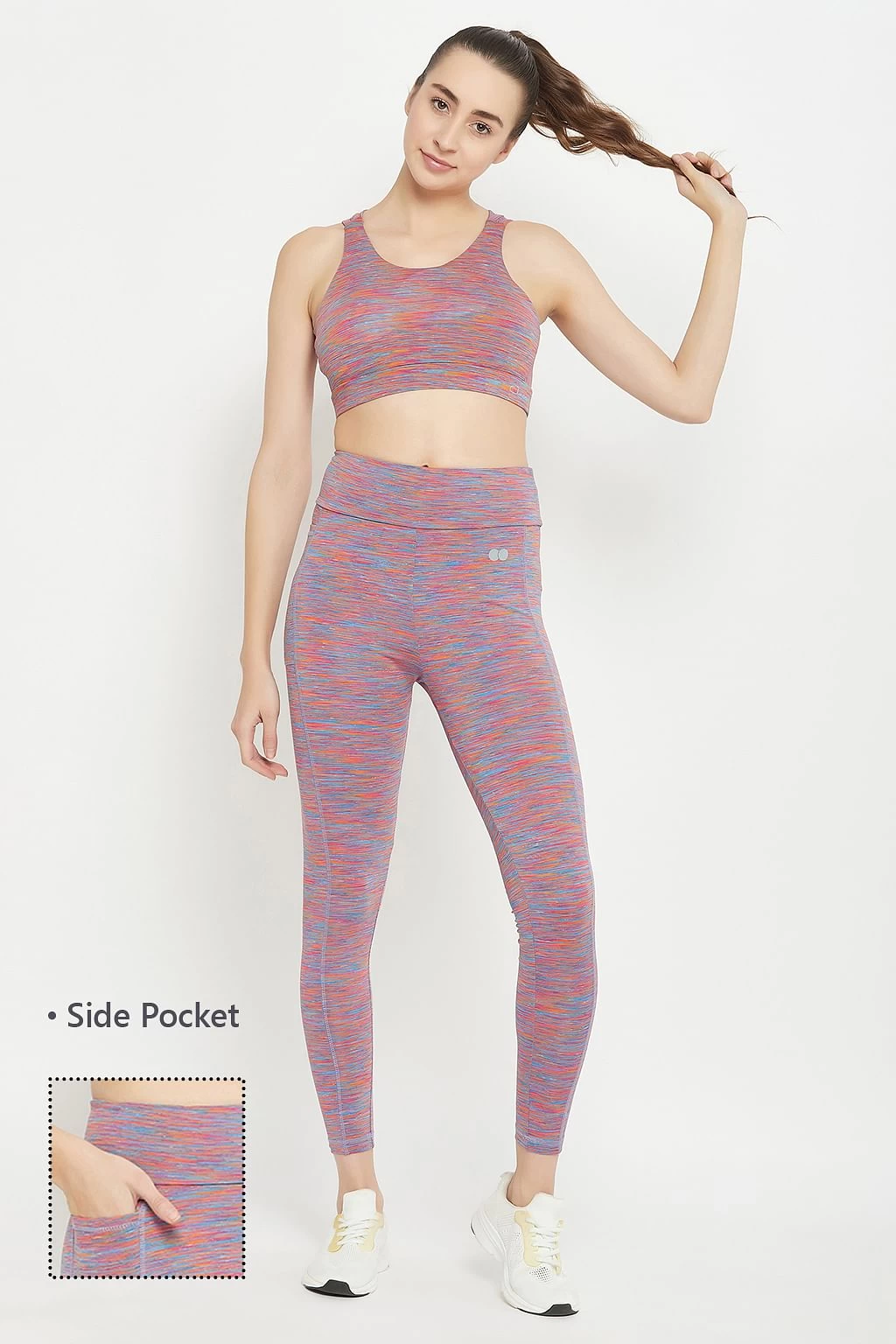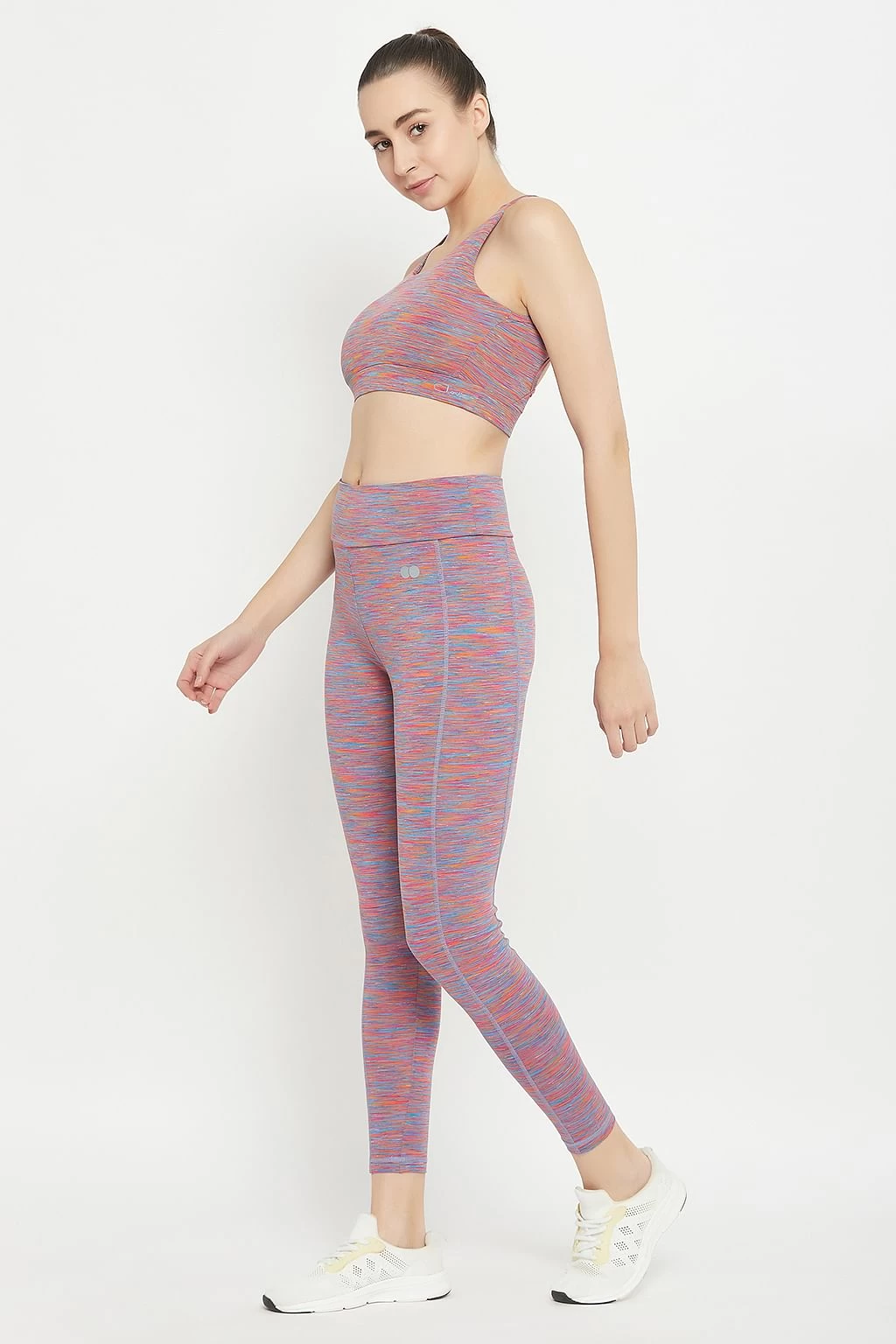 Medium Impact Printed Padded Sports Bra & High Rise Active Tights In Multicolour With Side Pocket