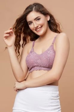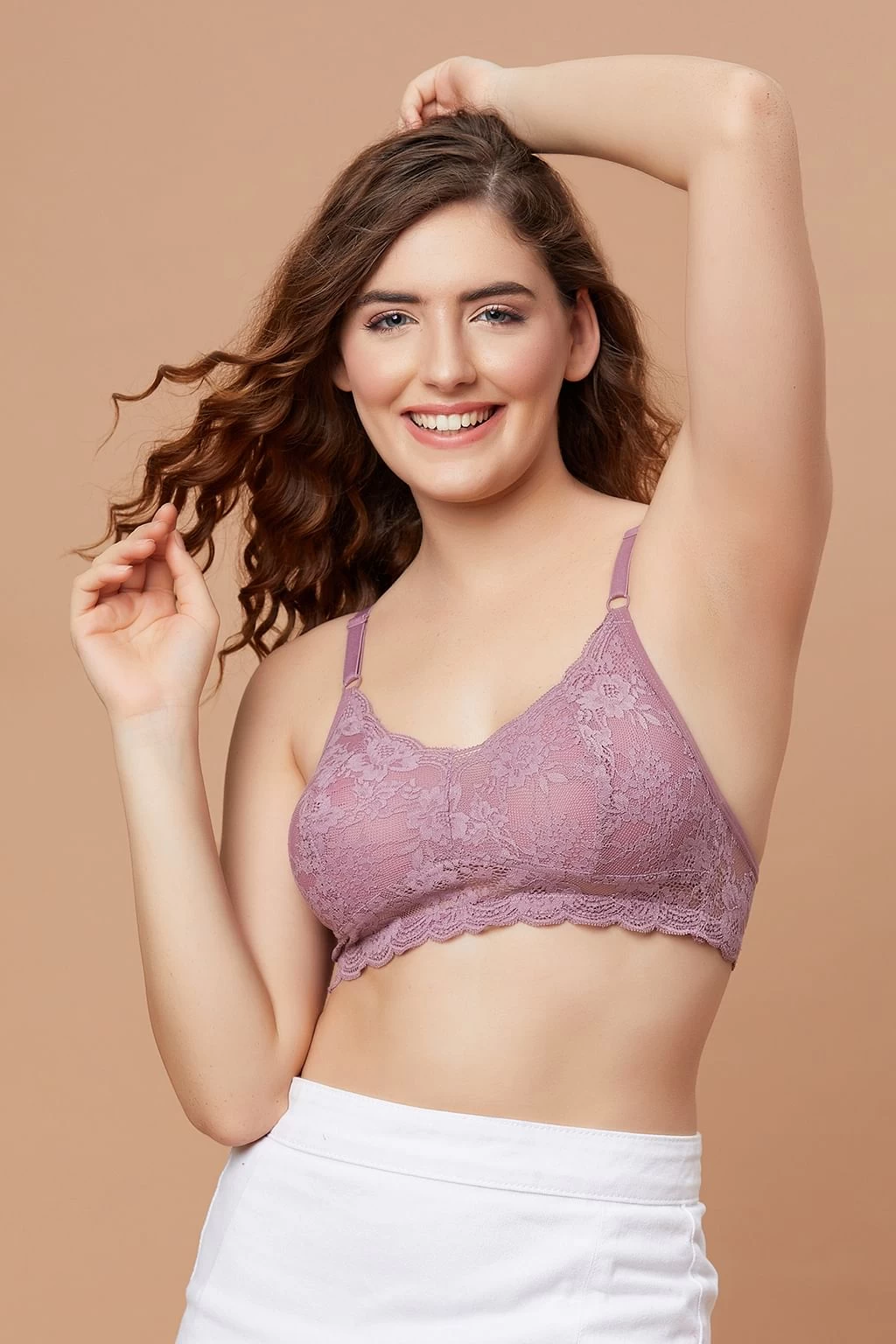 Non-Padded Non-Wire Full Cup Bralette In Lilac – Lace