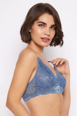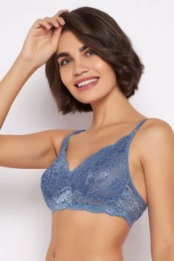 Non-Padded Non-Wired Full Cup Bralette In Cobalt Blue – Lace