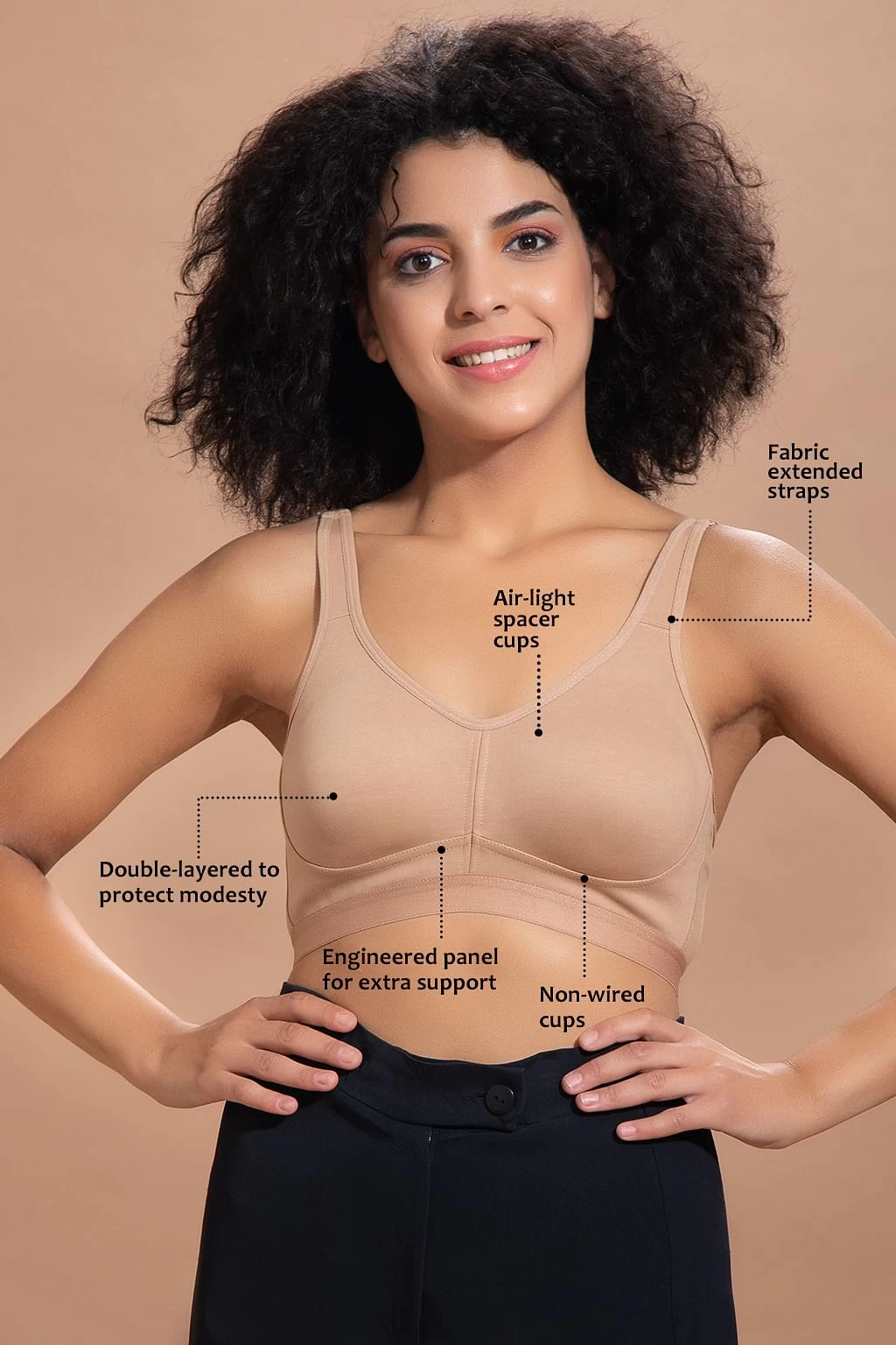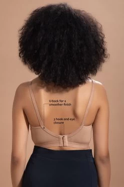 Nude colour T-shirt bra with non-padded spacer cups to avoid extra bulk.