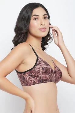 Brown T-shirt bra crafted with smooth polyamide fabric.