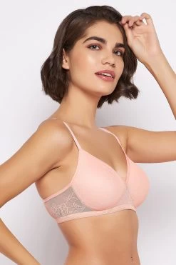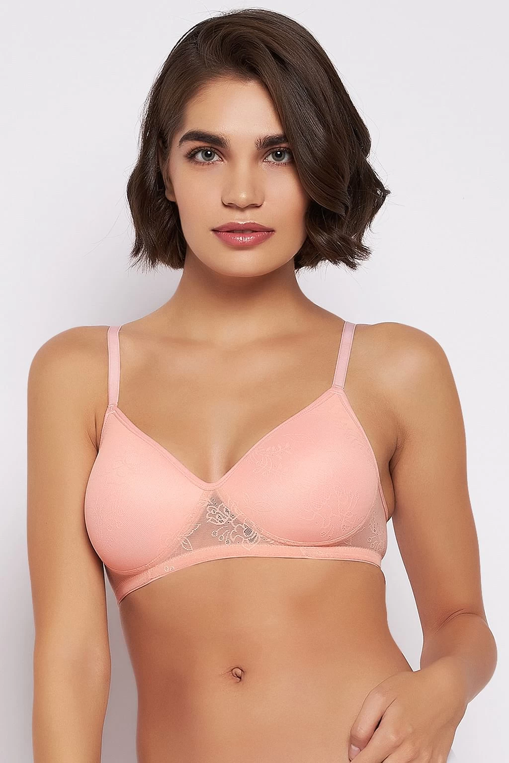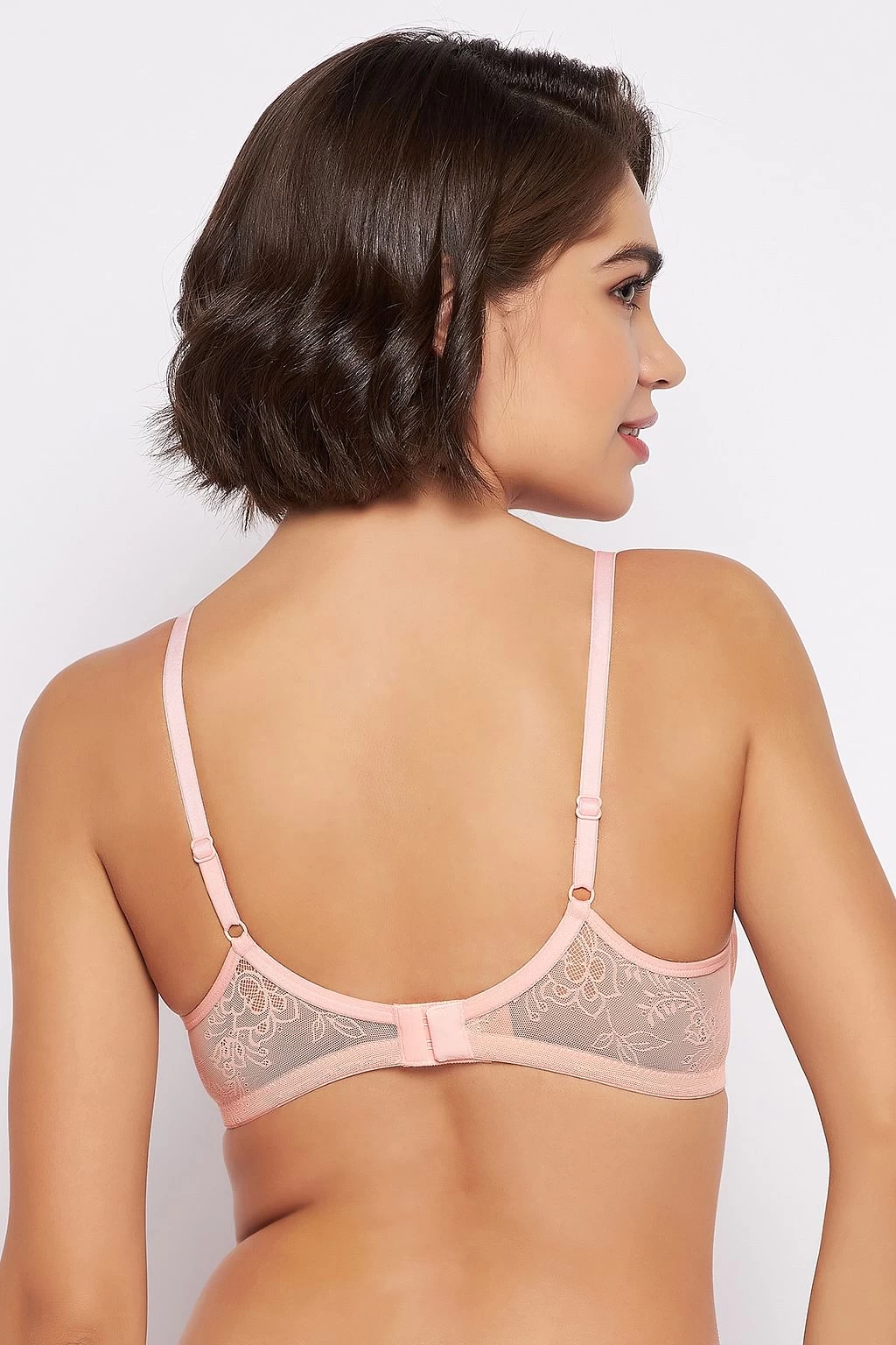 Padded Non-Wired Full Cup Bra In Baby Pink – Lace