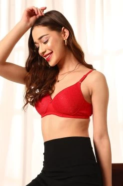 Be the first to review “Padded Non-Wired Full Cup Bra In Red – Lace” Cancel reply