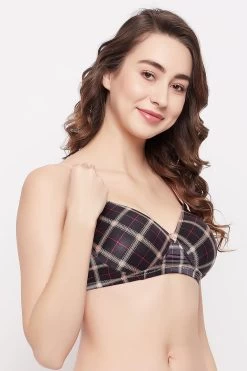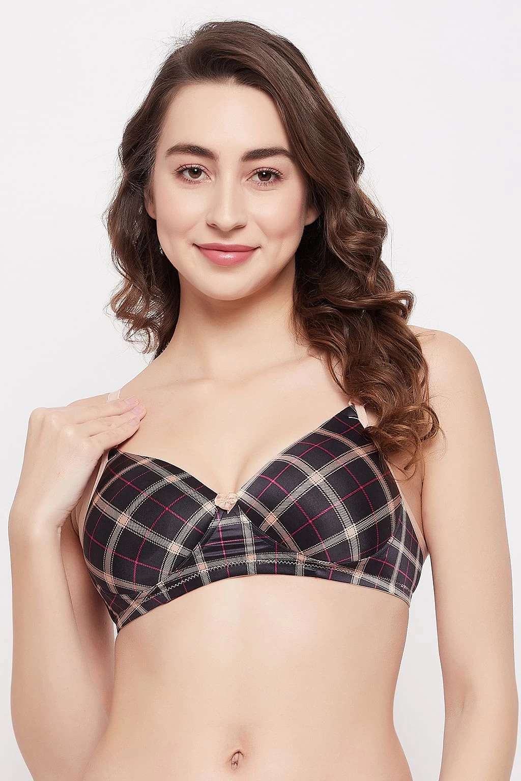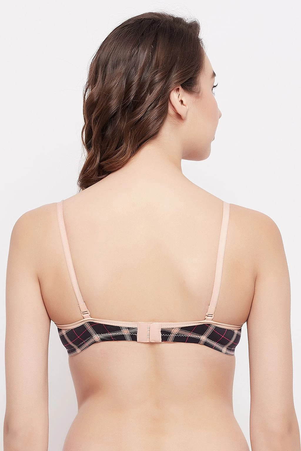 Padded Non-Wired Full Cup Checkered Multiway T-shirt Bra In Black