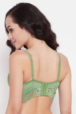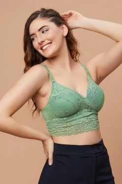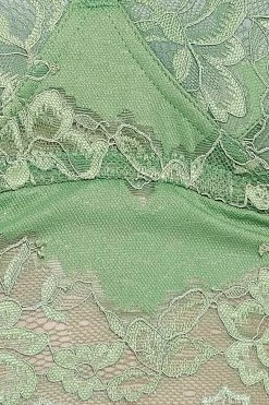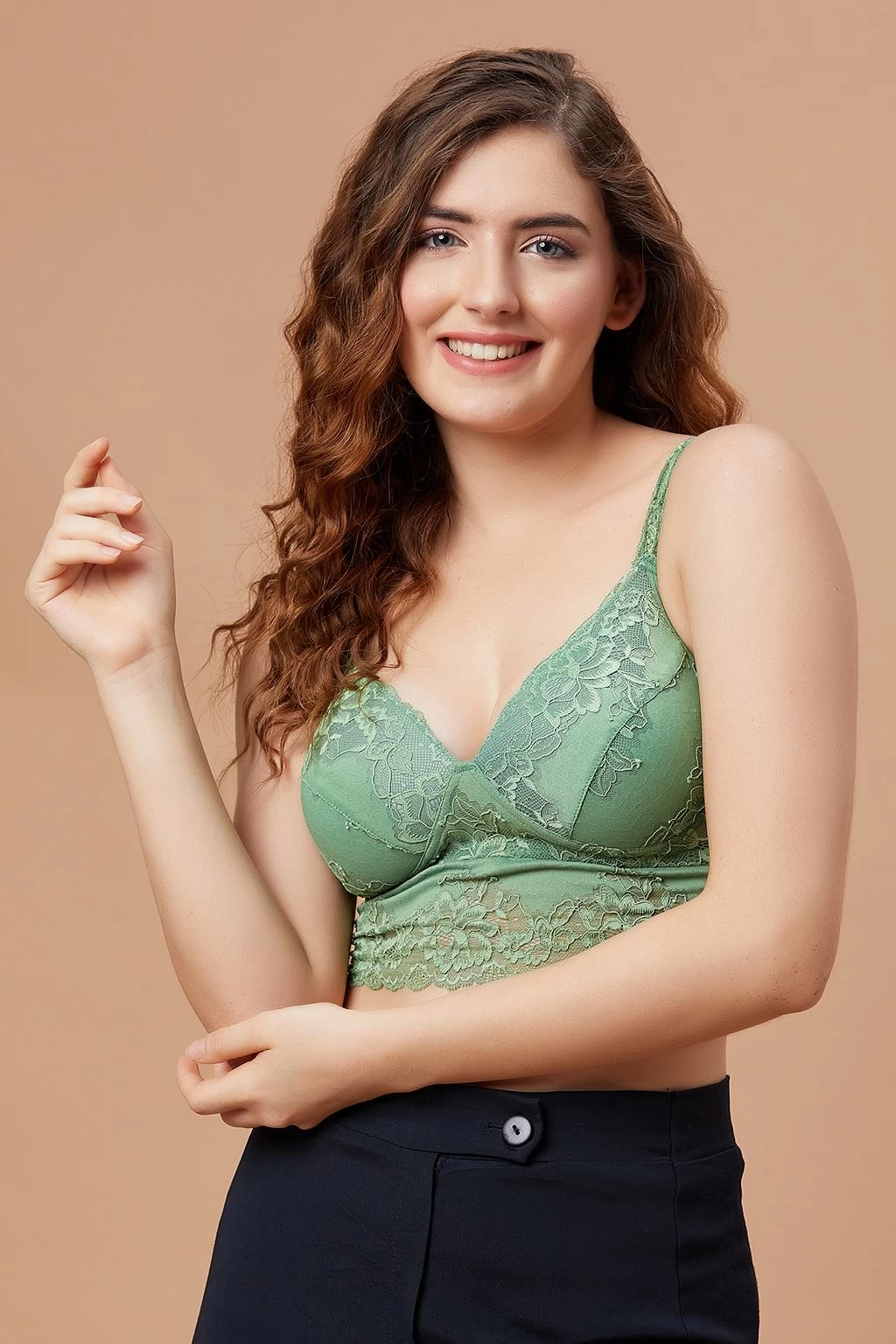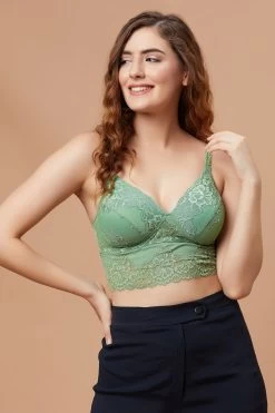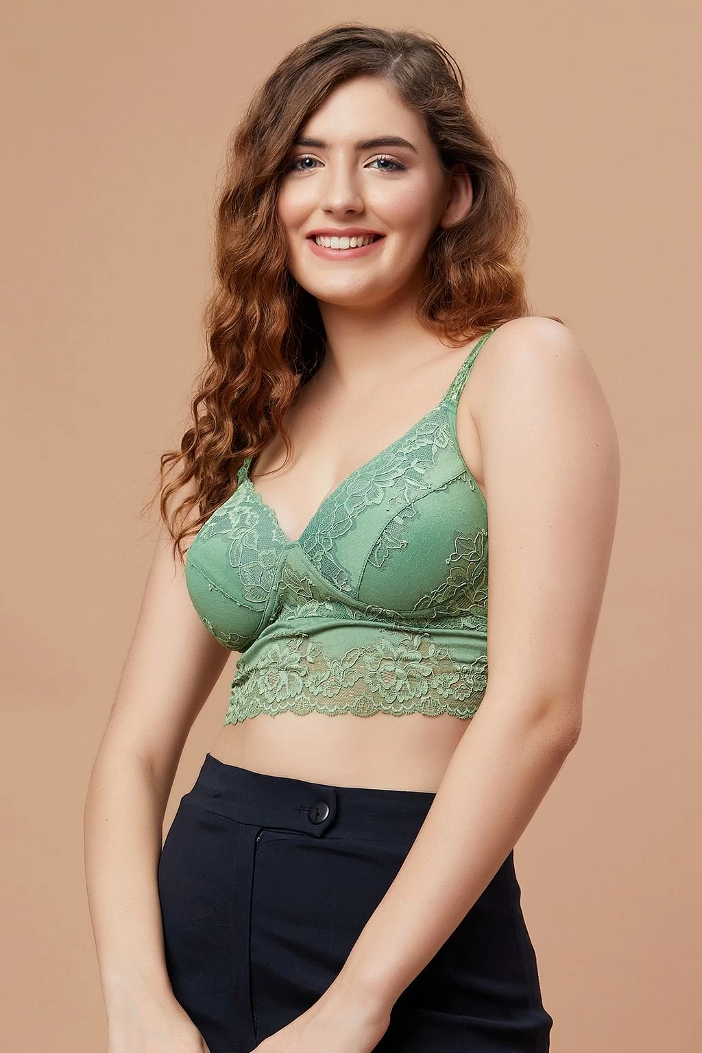 Padded Non-Wired Full Cup Longline Bralette In Forest Green – Lace