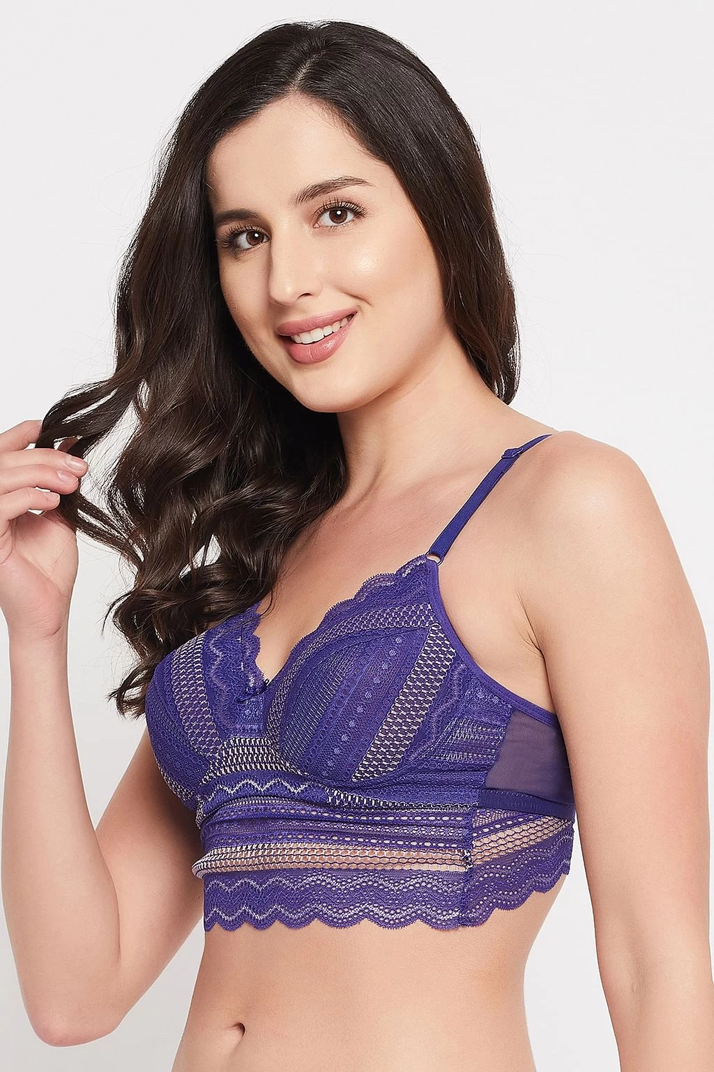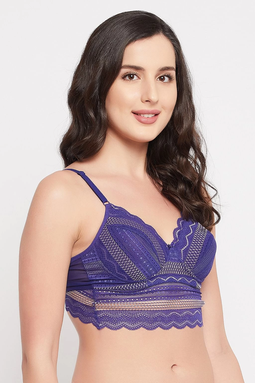 Padded Non-Wired Full Cup Longline Bralette In Royal Blue – Lace