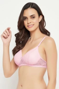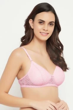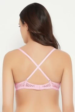 Padded Non-Wired Full Cup Multiway Bra In Baby Pink – Lace