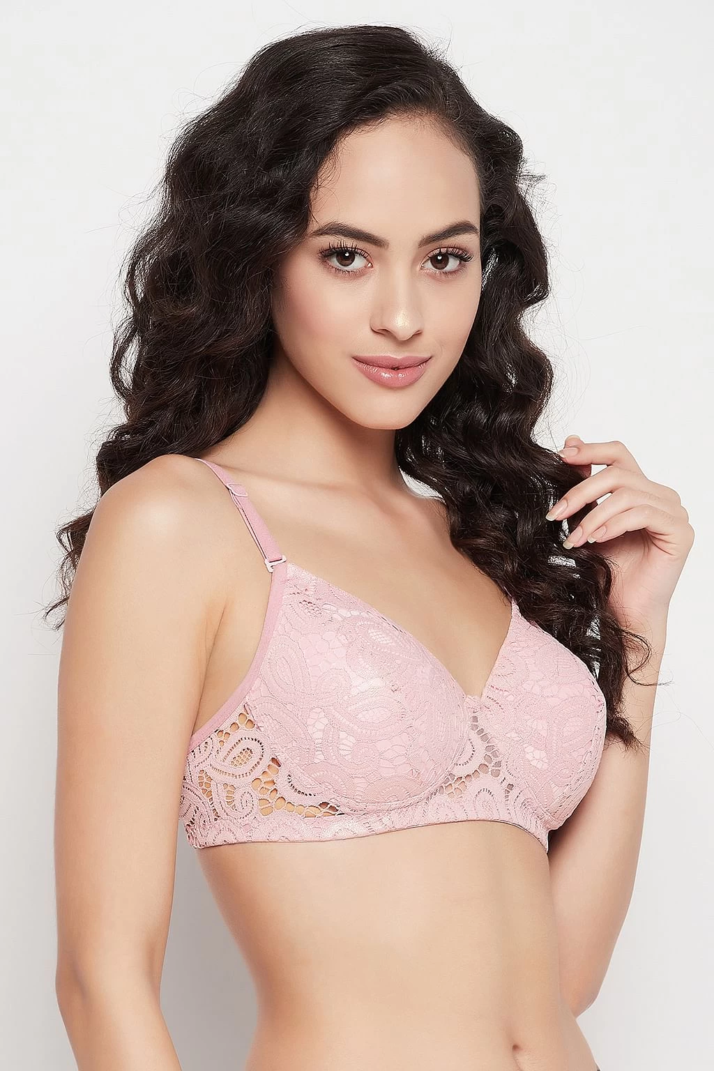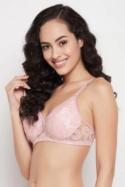 Padded Non-Wired Full Cup Multiway Bra In Dusty Pink – Lace