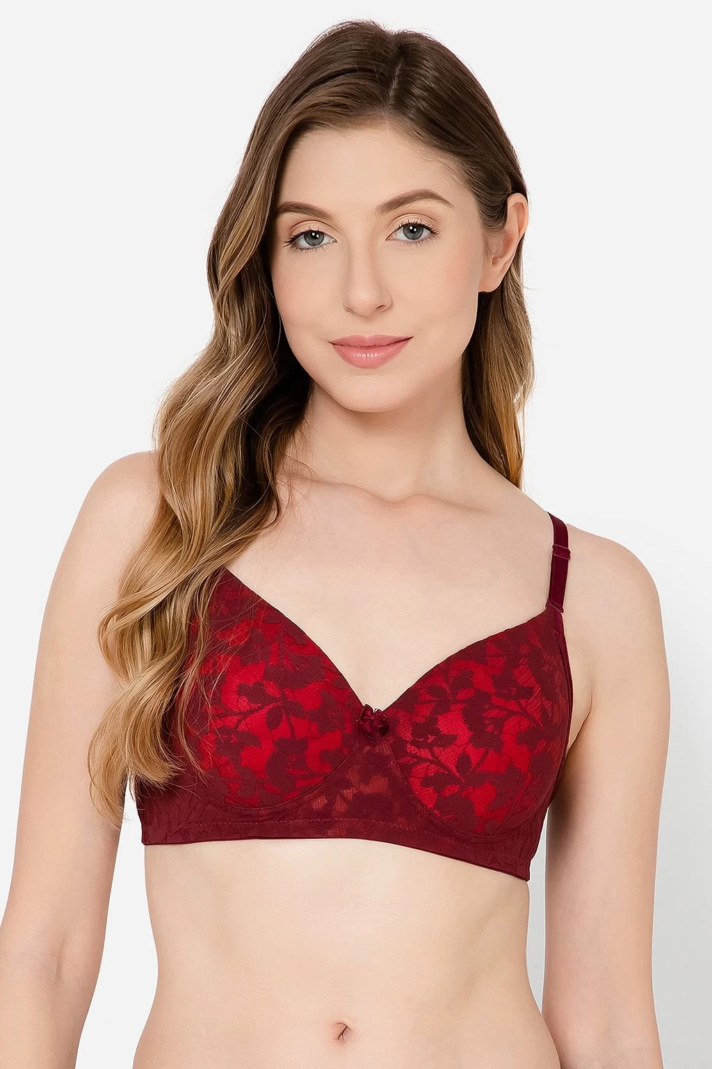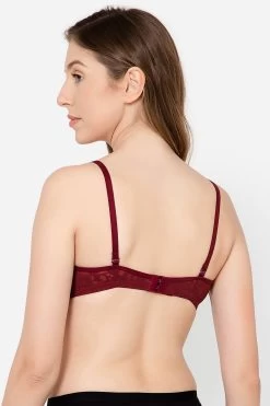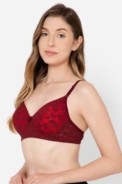 Padded Non-Wired Full Cup Multiway Bra In Maroon – Lace