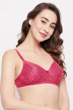 Padded Non-Wired Full Cup Self-Patterned Multiway Bra In Hot Pink – Lace