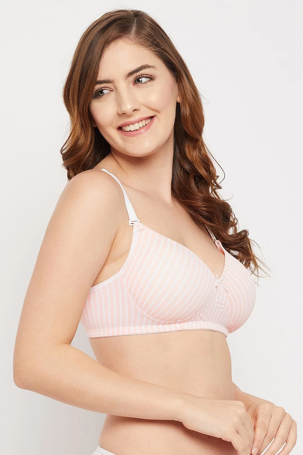 Padded Non-Wired Full Cup Striped Multiway T-shirt Bra In Peach Colour