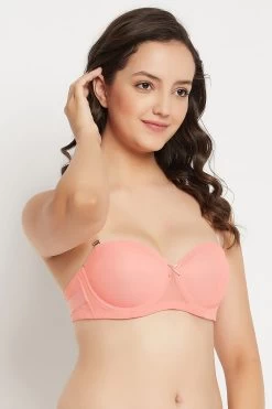 Be the first to review “Padded Underwired Demi Cup Strapless T-shirt Bra With Transparent Straps & Band In Peach Colour” Cancel reply
