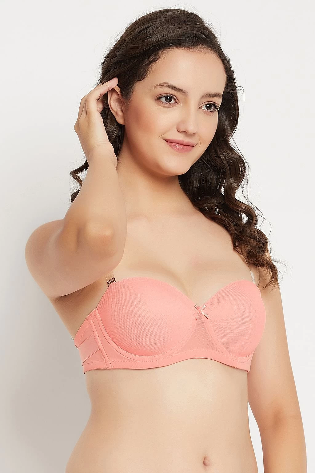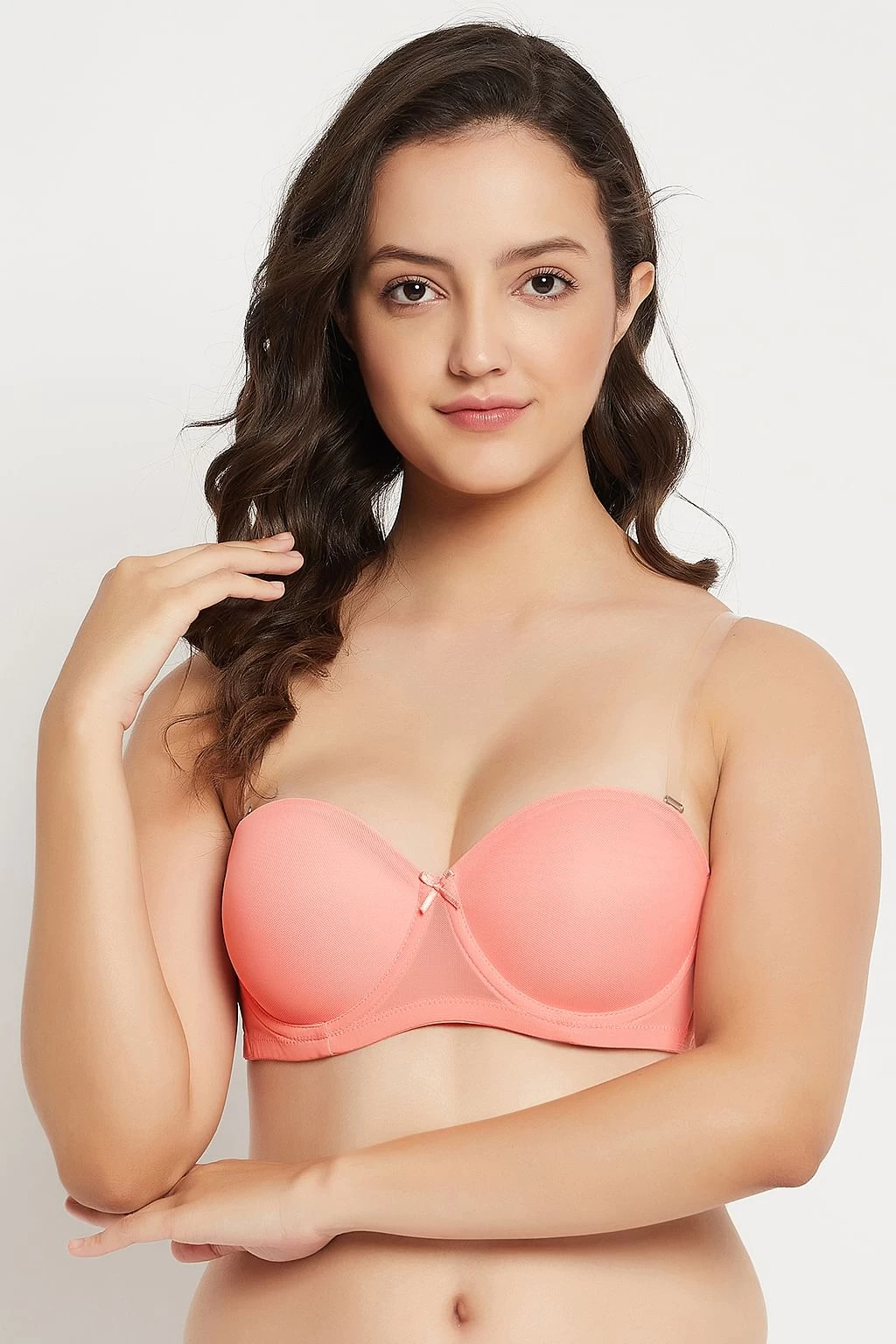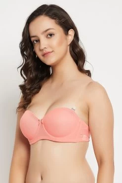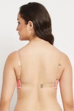 Padded Underwired Demi Cup Strapless T-shirt Bra With Transparent Straps & Band In Peach Colour