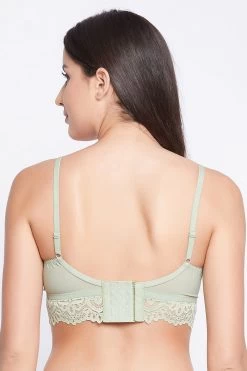 Padded Underwired Full Cup Cage Bralette In Sage Green – Lace