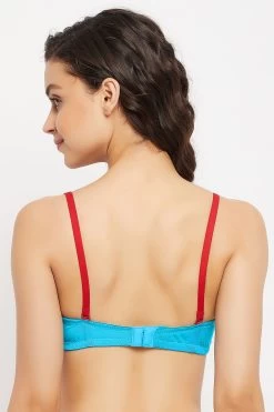 Sky blue T-shirt bra with padded cups to protect modesty.