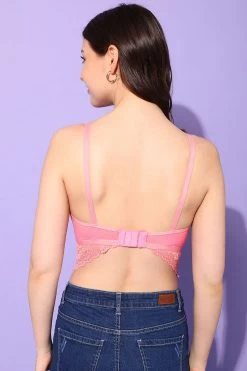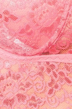 Padded Underwired Full Cup Longline Bralette In Rosewood Pink – Lace