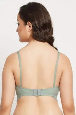 Padded Underwired Full Cup Longline Bralette In Sage Green – Lace