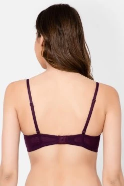 Wine colour strapless balconette bra crafted with soft powernet fabric.