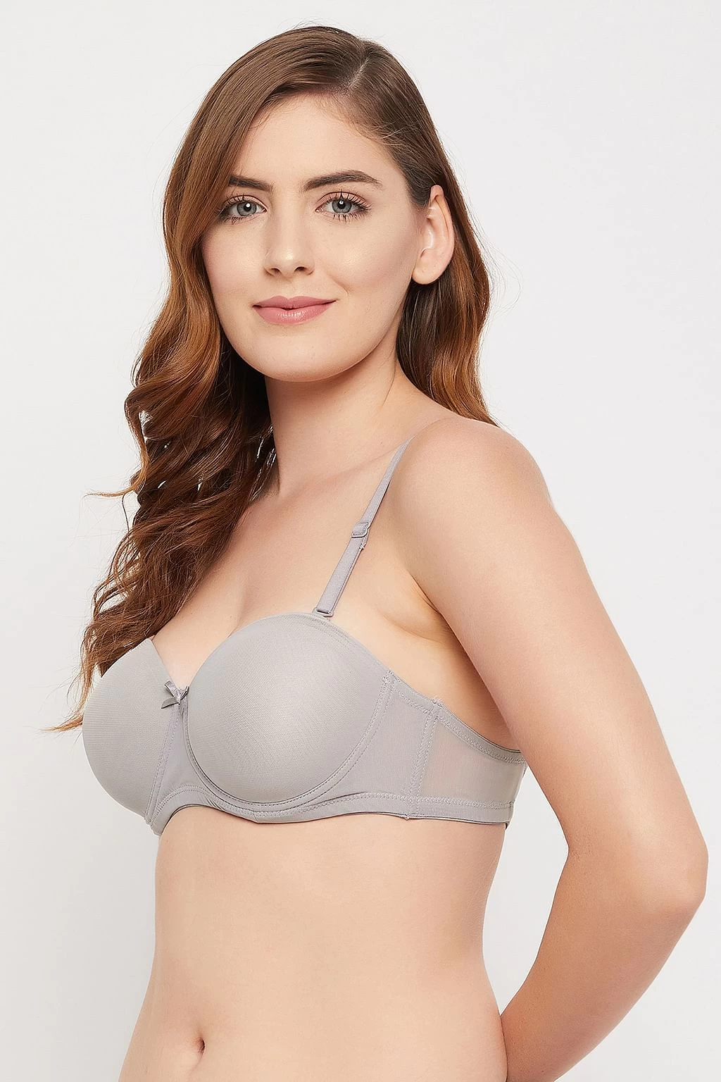 Light grey strapless balconette bra crafted with soft powernet fabric.