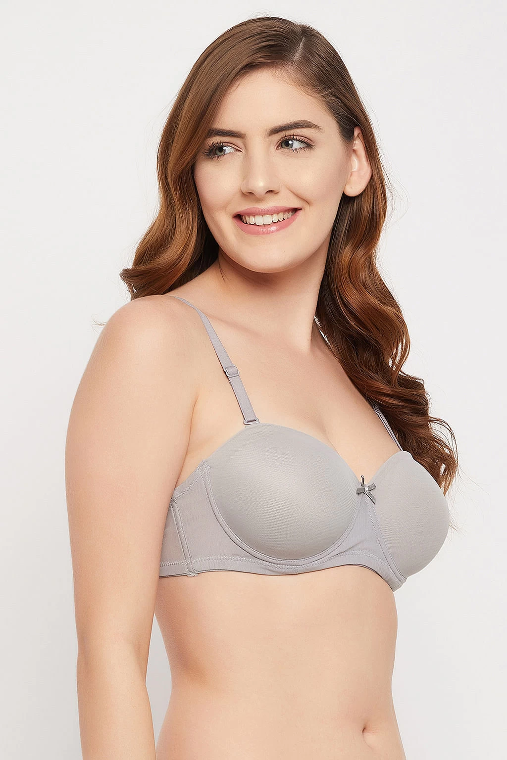 Padded Underwired Full Cup Strapless Balconette Bra In Light Grey