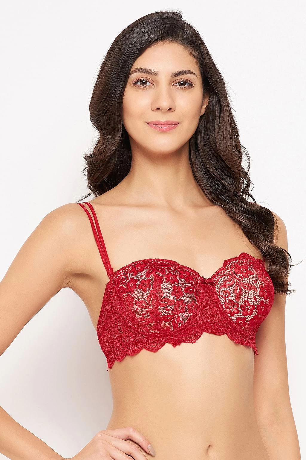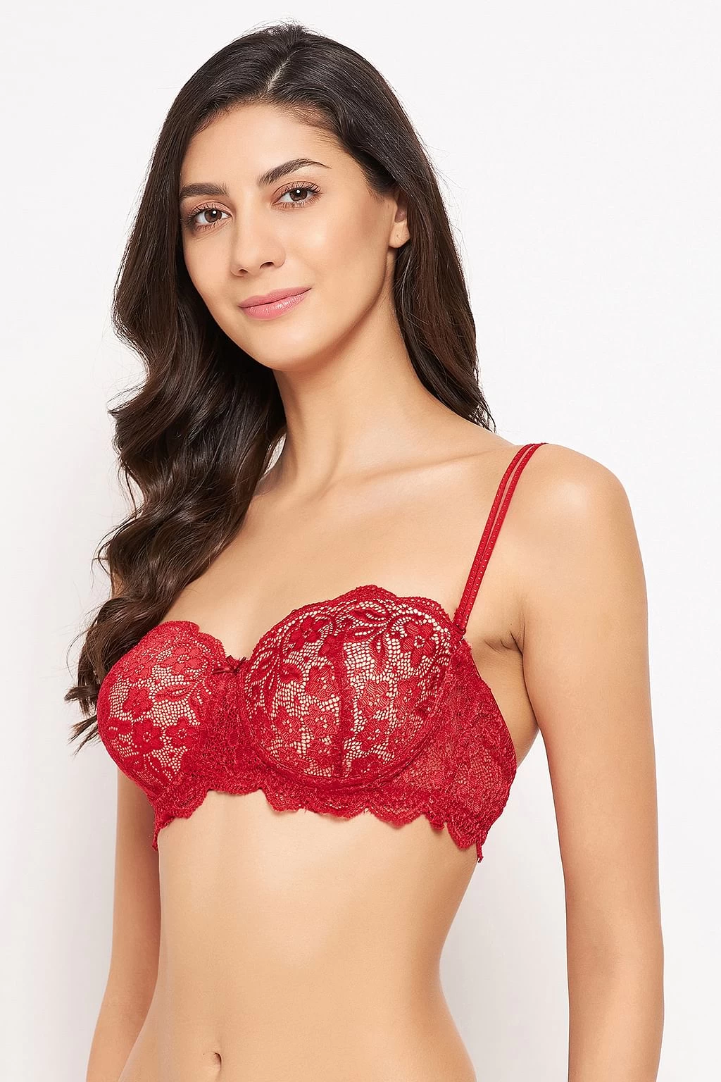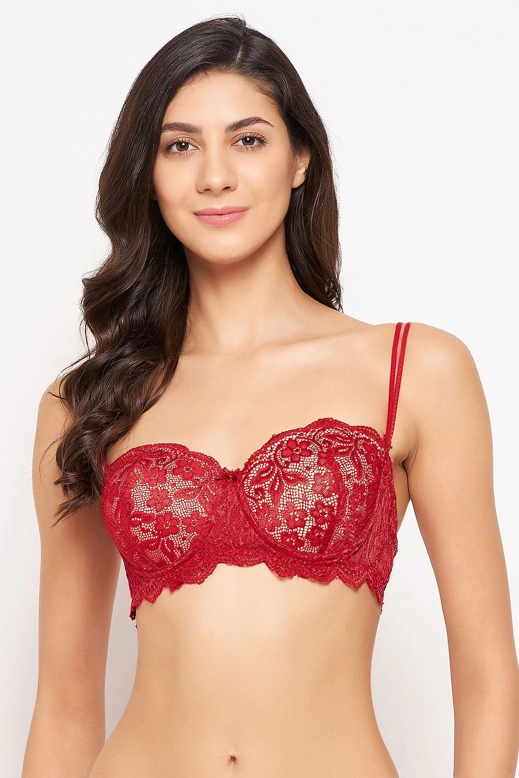 Padded Underwired Full Cup Strapless Balconette Bra In Maroon – Lace