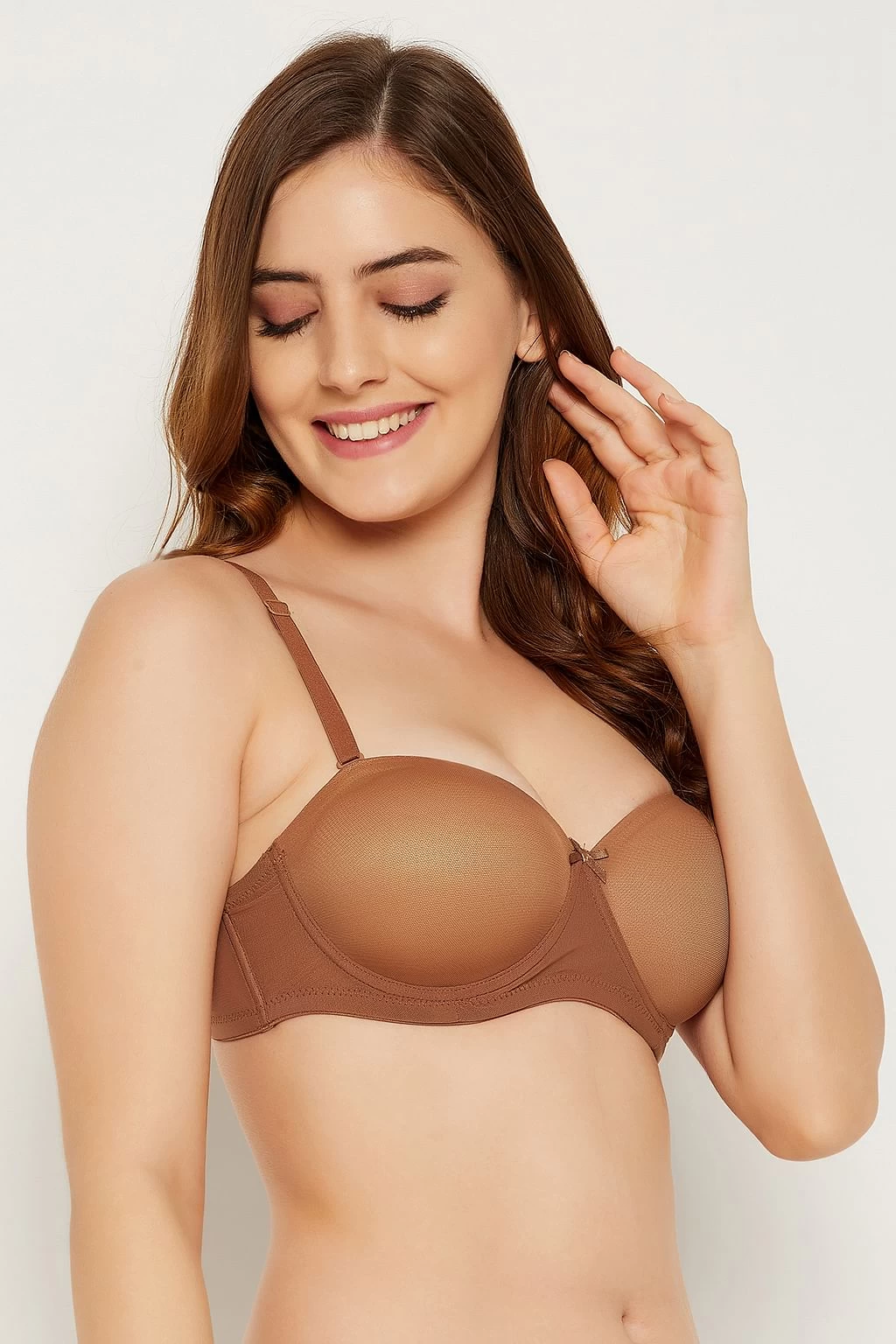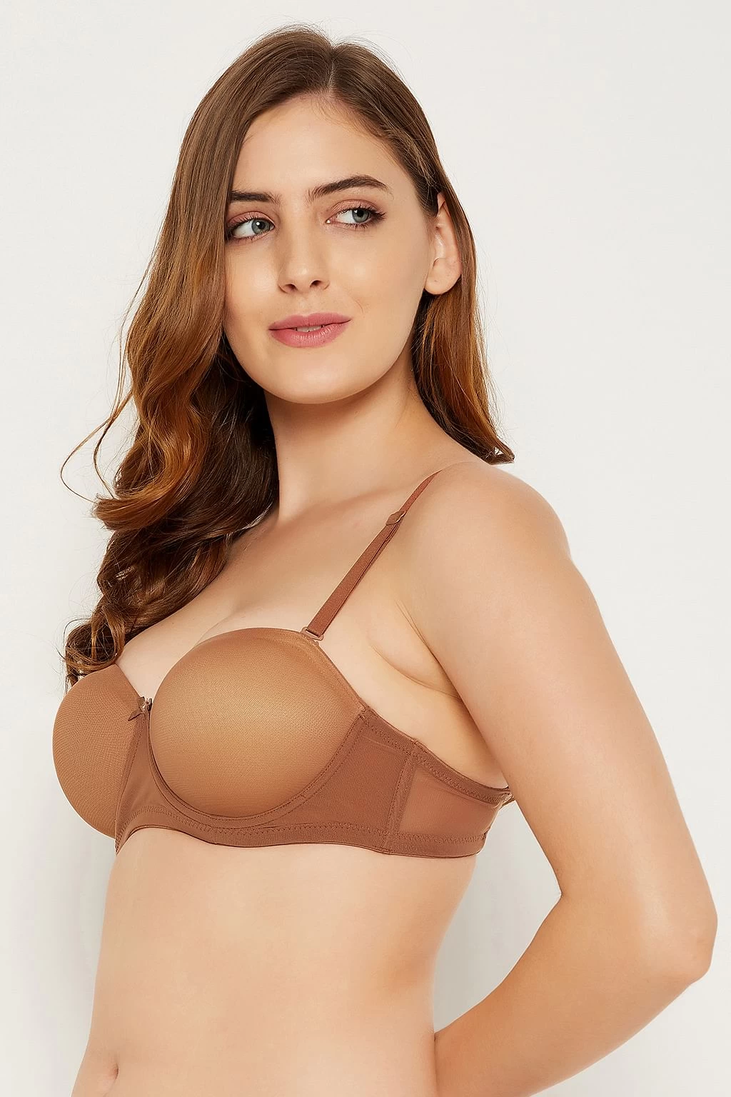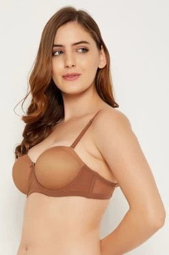Nude colour strapless balconette bra crafted with soft powernet fabric.