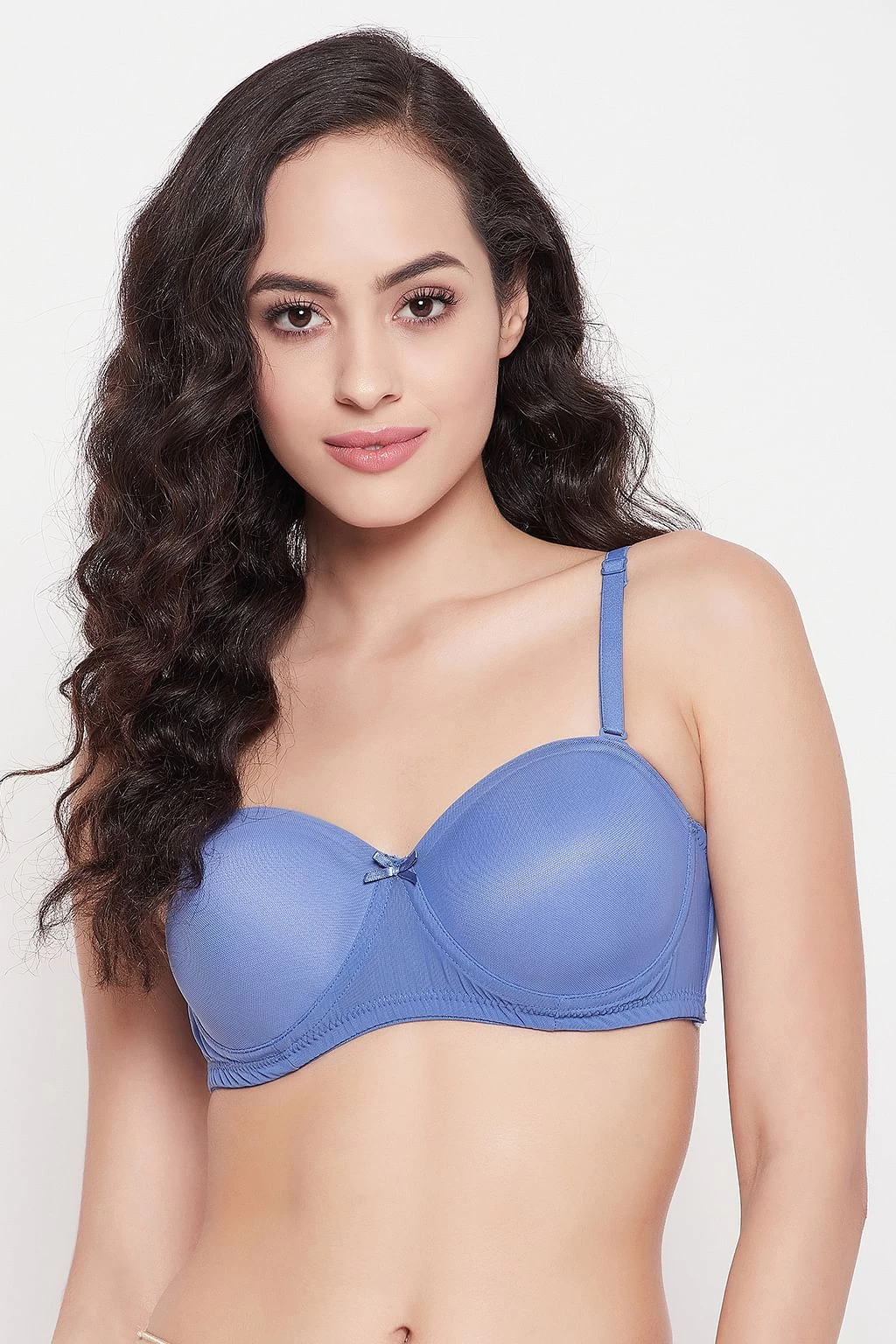 Periwinkle blue strapless balconette bra crafted with soft powernet fabric.