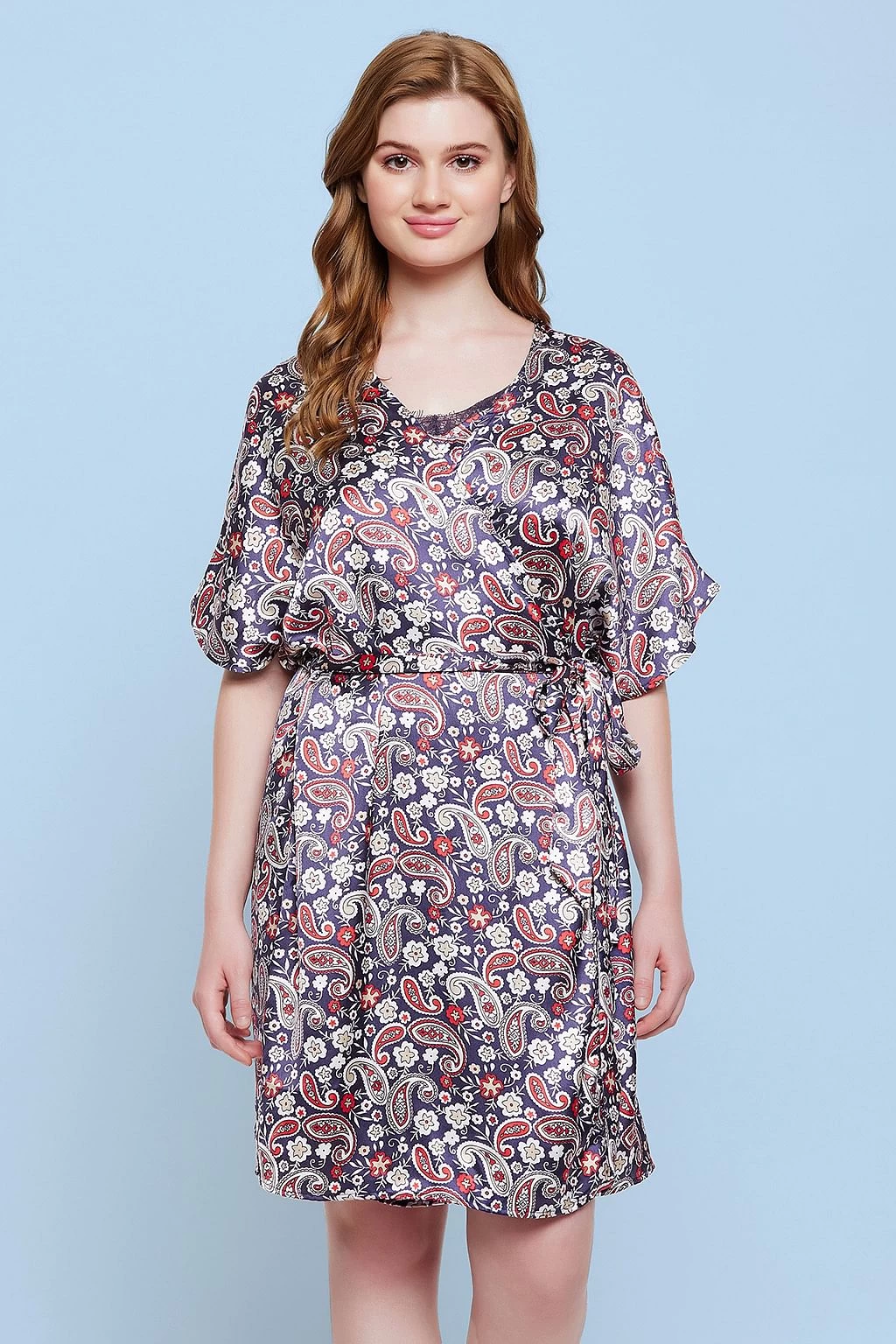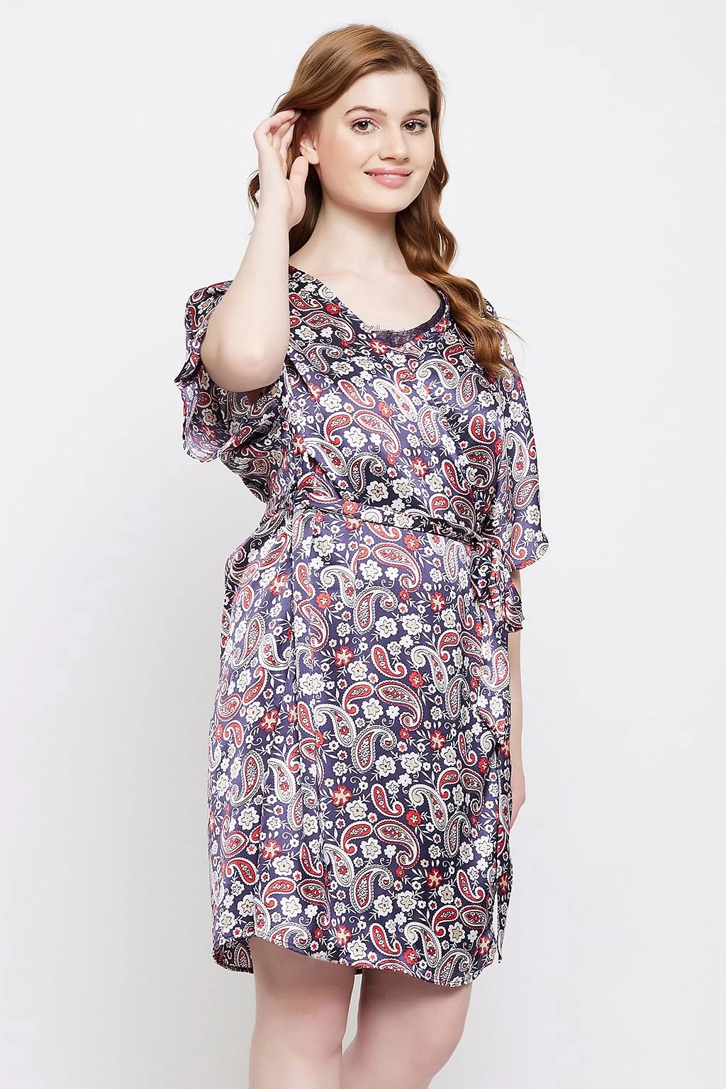 Be the first to review “Paisley Print Short Night Dress & Robe Set In Navy – Satin” Cancel reply