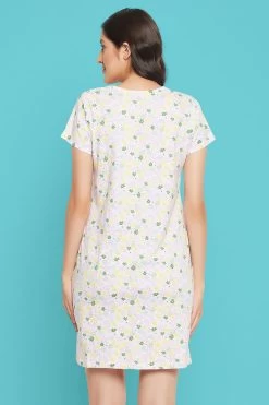 Pretty Florals Button Down Night Dress In White – 100% Cotton