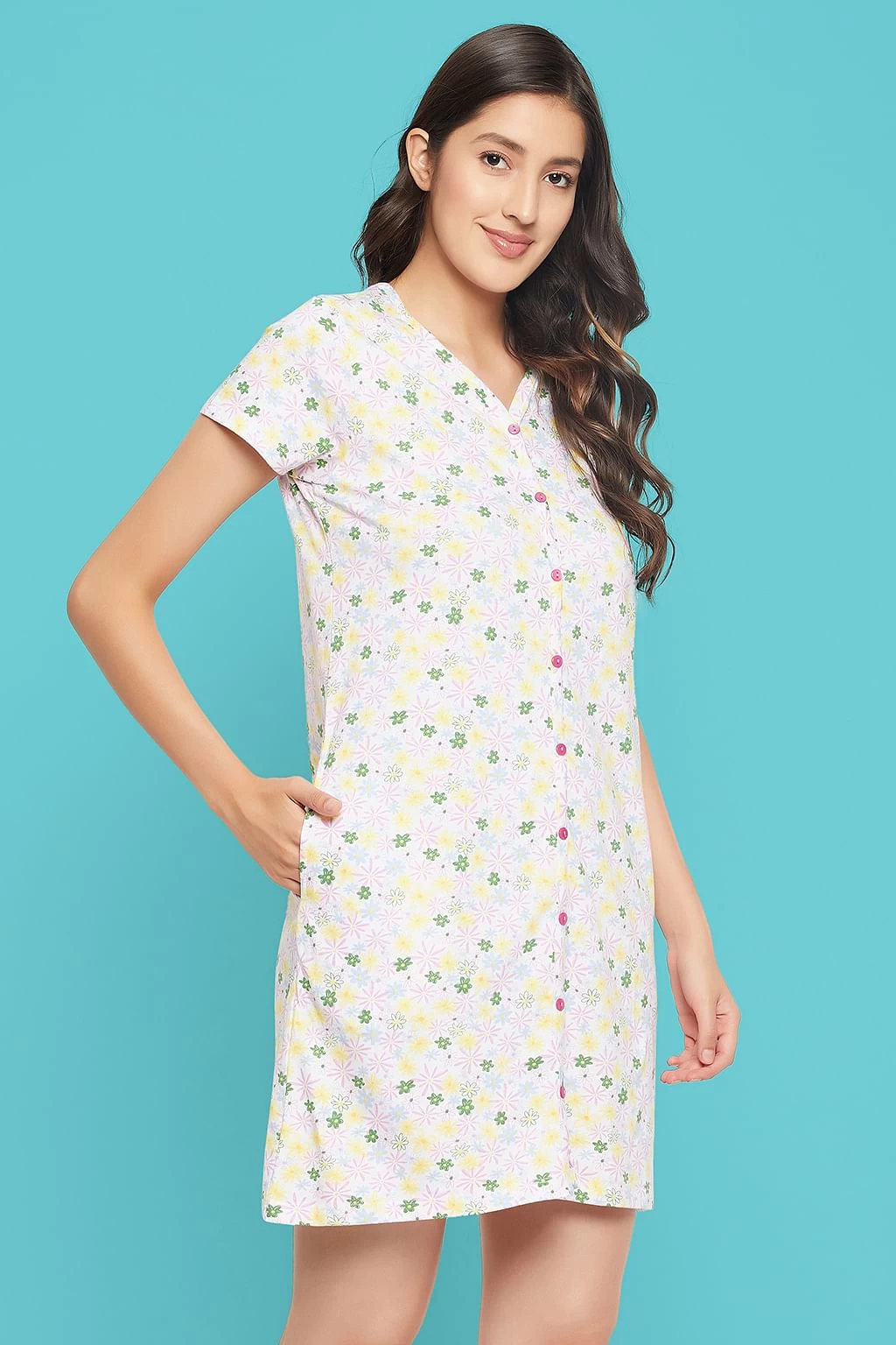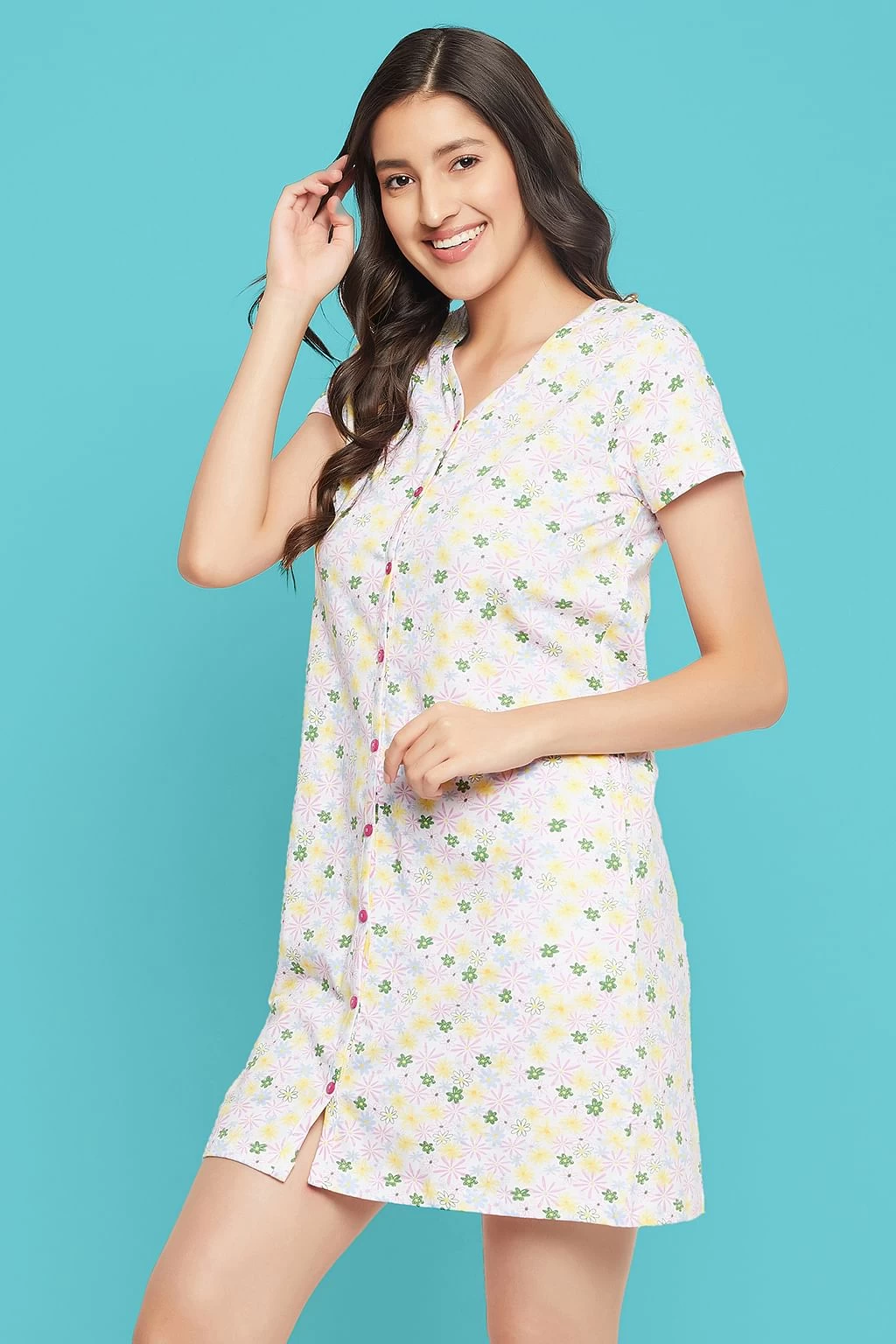 White button down short night dress crafted with soft & premium 100% cotton fabric.