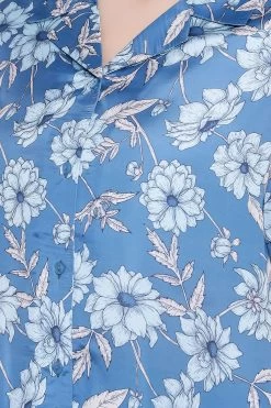 Pretty Florals Button Down Shirt & Pyjama In Powder Blue – Satin
