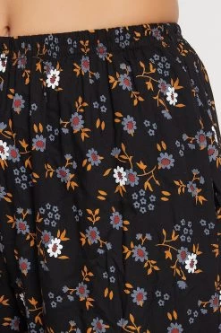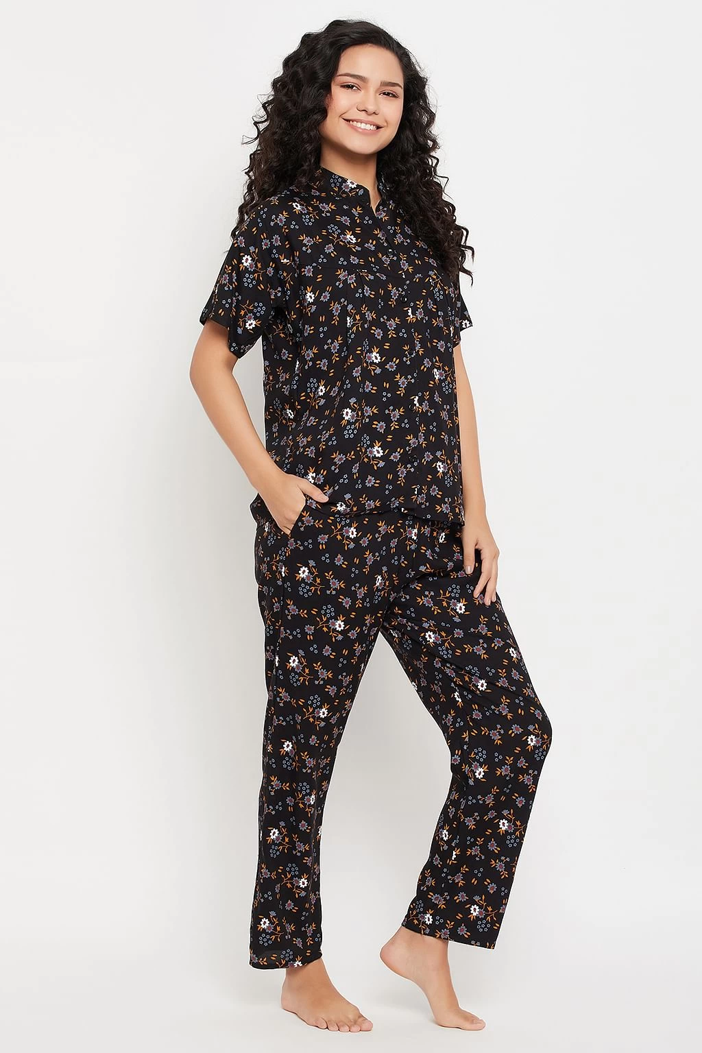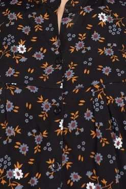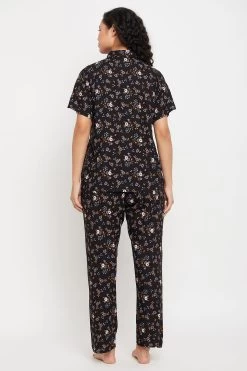 Pretty Florals Button Down Shirt & Pyjama Set In Black – Rayon