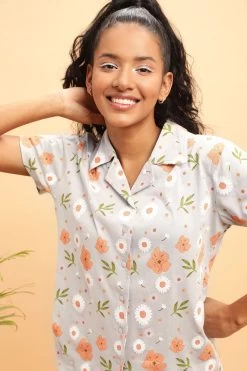 Be the first to review “Pretty Florals Button Down Shirt & Pyjama Set In Grey – 100% Cotton” Cancel reply