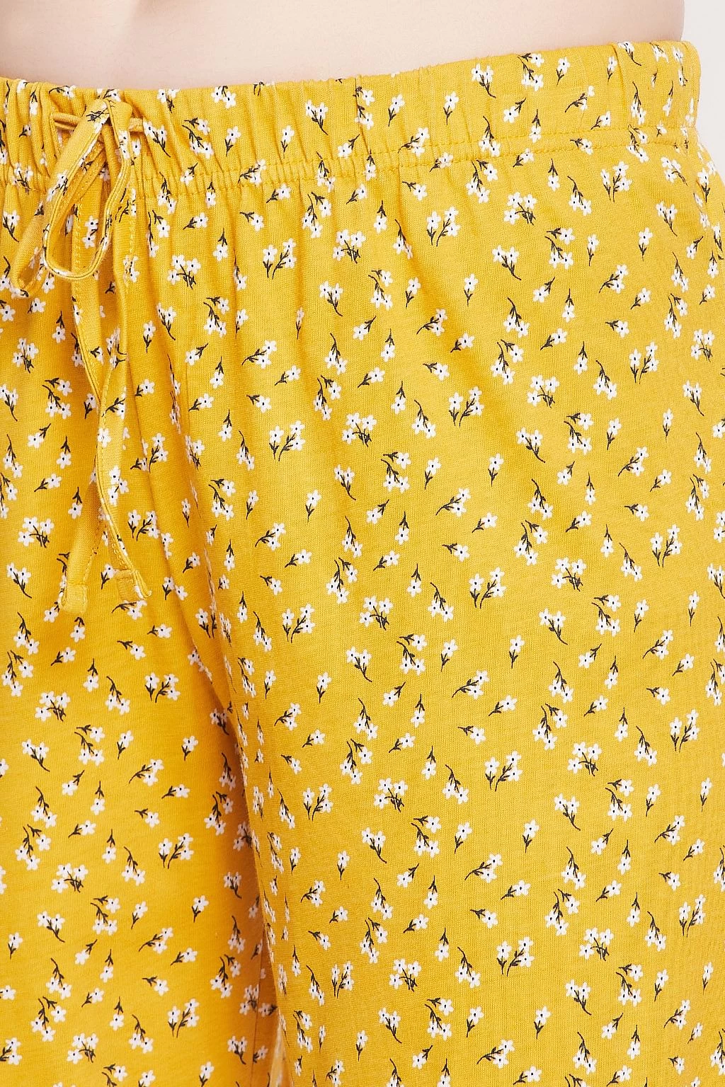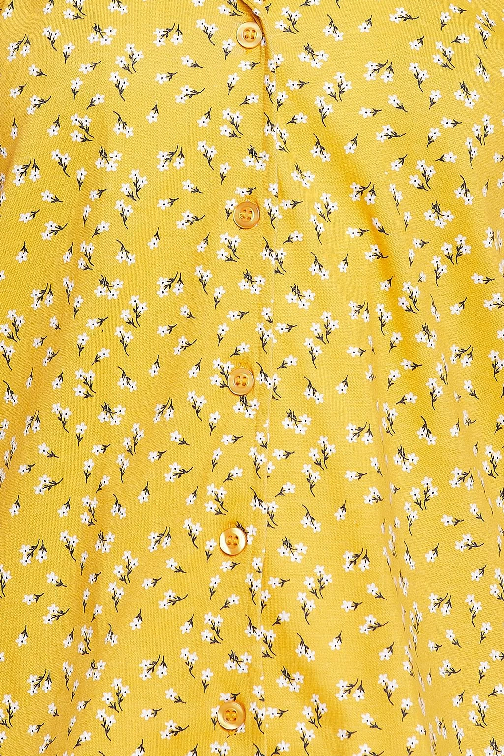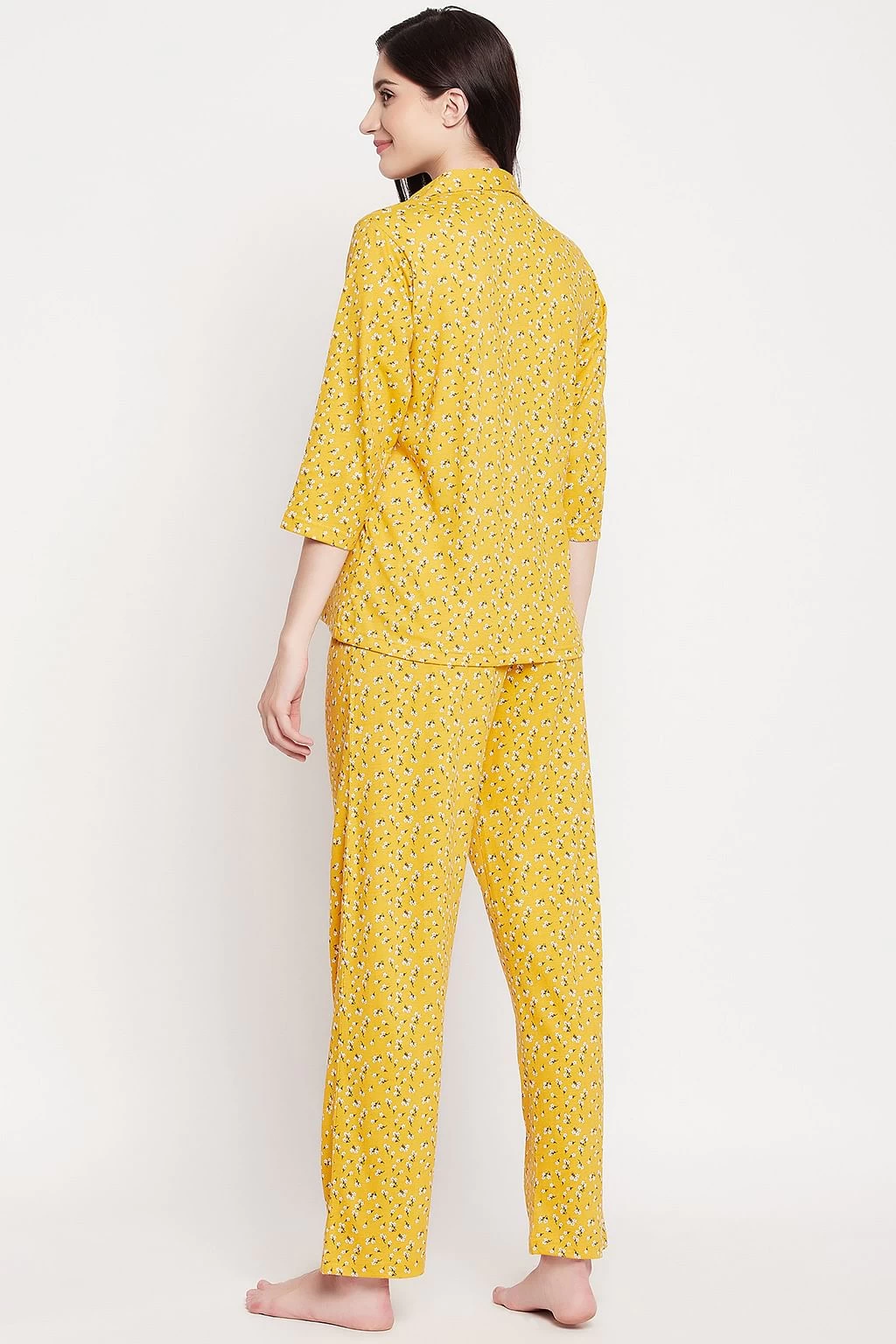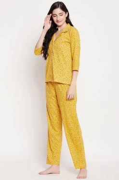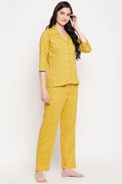Pretty Florals Button Down Shirt & Pyjama Set In Mustard Yellow – 100% Cotton