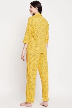 Mustard yellow button down shirt & pyjama set crafted with premium 100% cotton fabric.