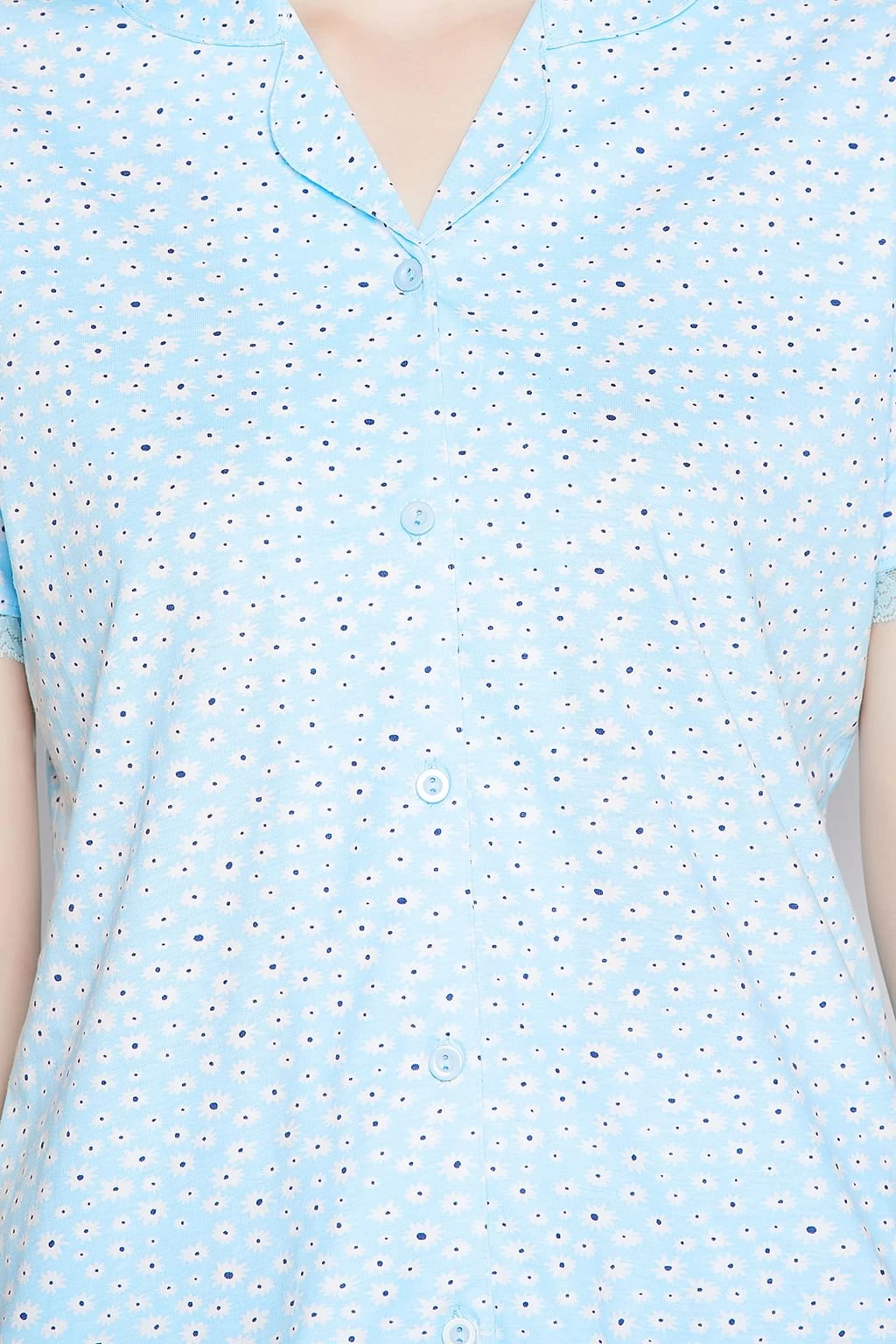Shirt has short sleeves with exquisite lace on the edges.
