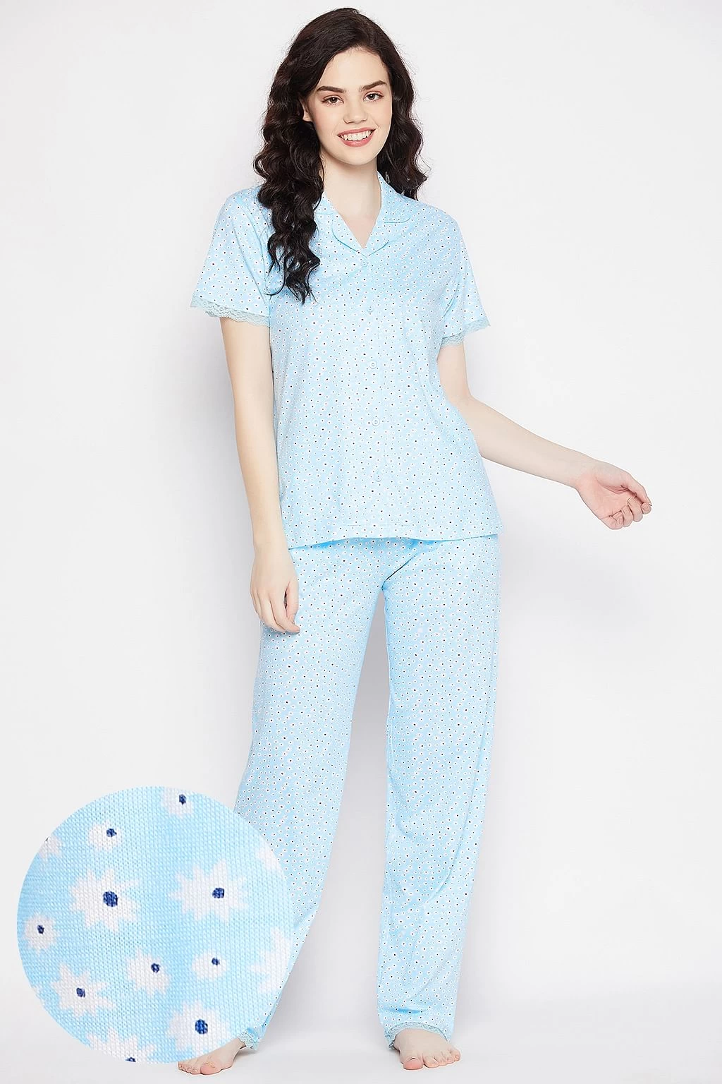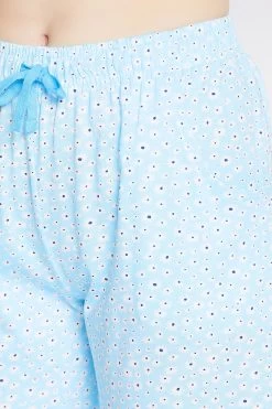 Pretty Florals Button Down Shirt & Pyjama Set In Sky Blue – Modal