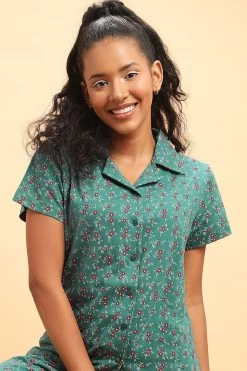 Be the first to review “Pretty Florals Button Down Shirt & Pyjama Set In Teal Blue – 100% Cotton” Cancel reply