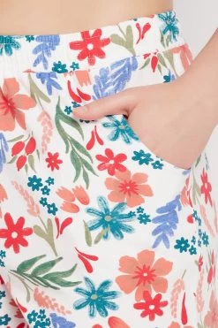 Pretty Florals Button Down Shirt & Shorts Set In White – 100% Cotton