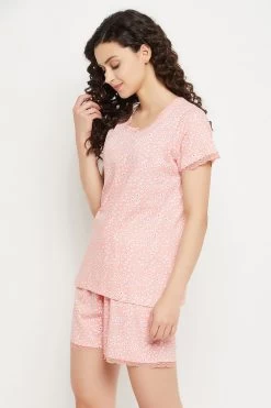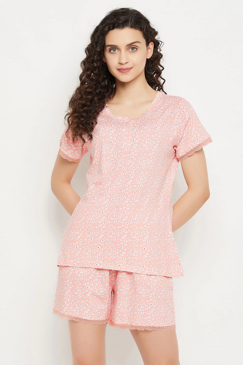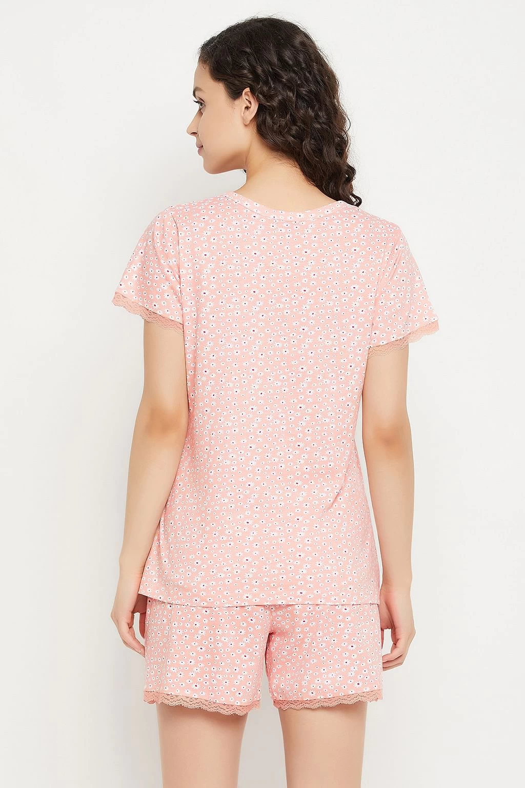 Pretty Florals Button Down Top & Shorts Set In Peach Colour – Modal