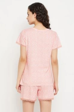 Peach colour button down top & shorts set crafted with soft & lustrous modal fabric.