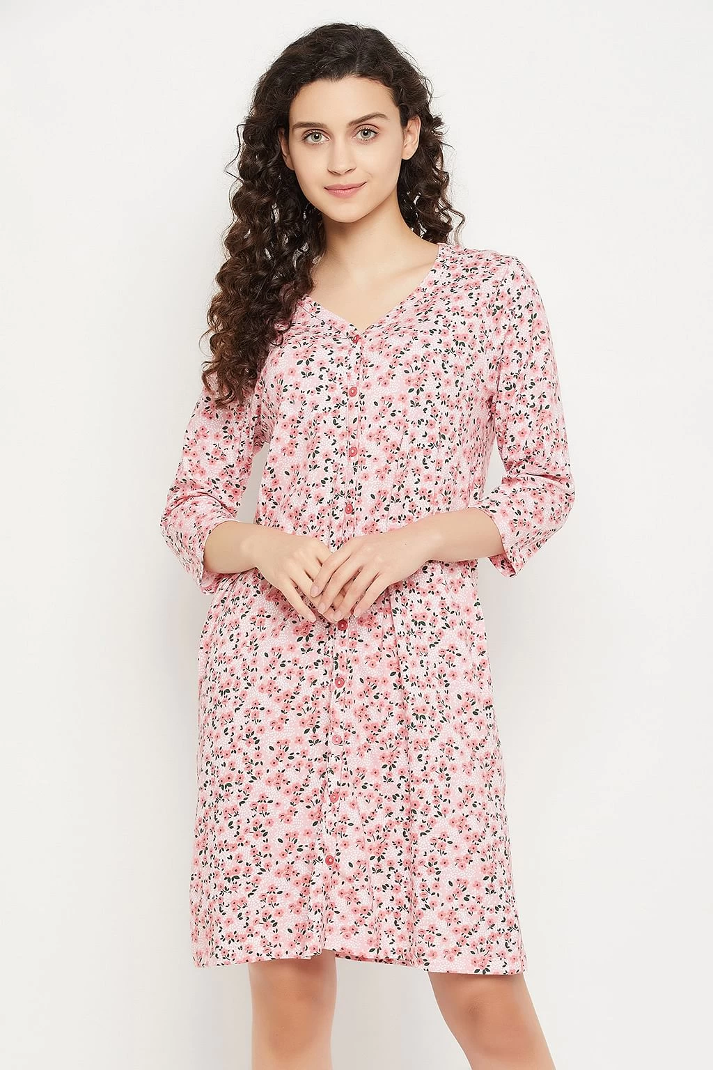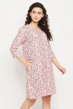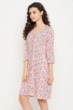 Baby pink short nighty crafted with premium 100% cotton fabric.