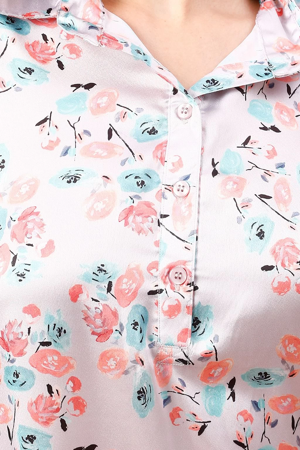 Pretty Florals Button Down Shirt & Pyjama Set In Sky Blue – Satin