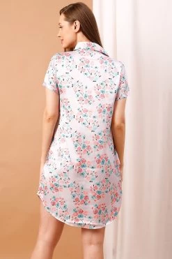 Pretty Florals Button Down Shirt & Pyjama Set In Sky Blue – Rayon