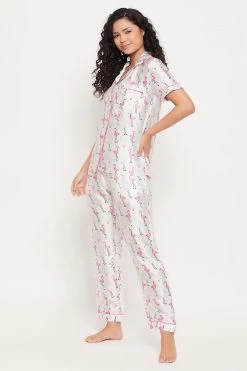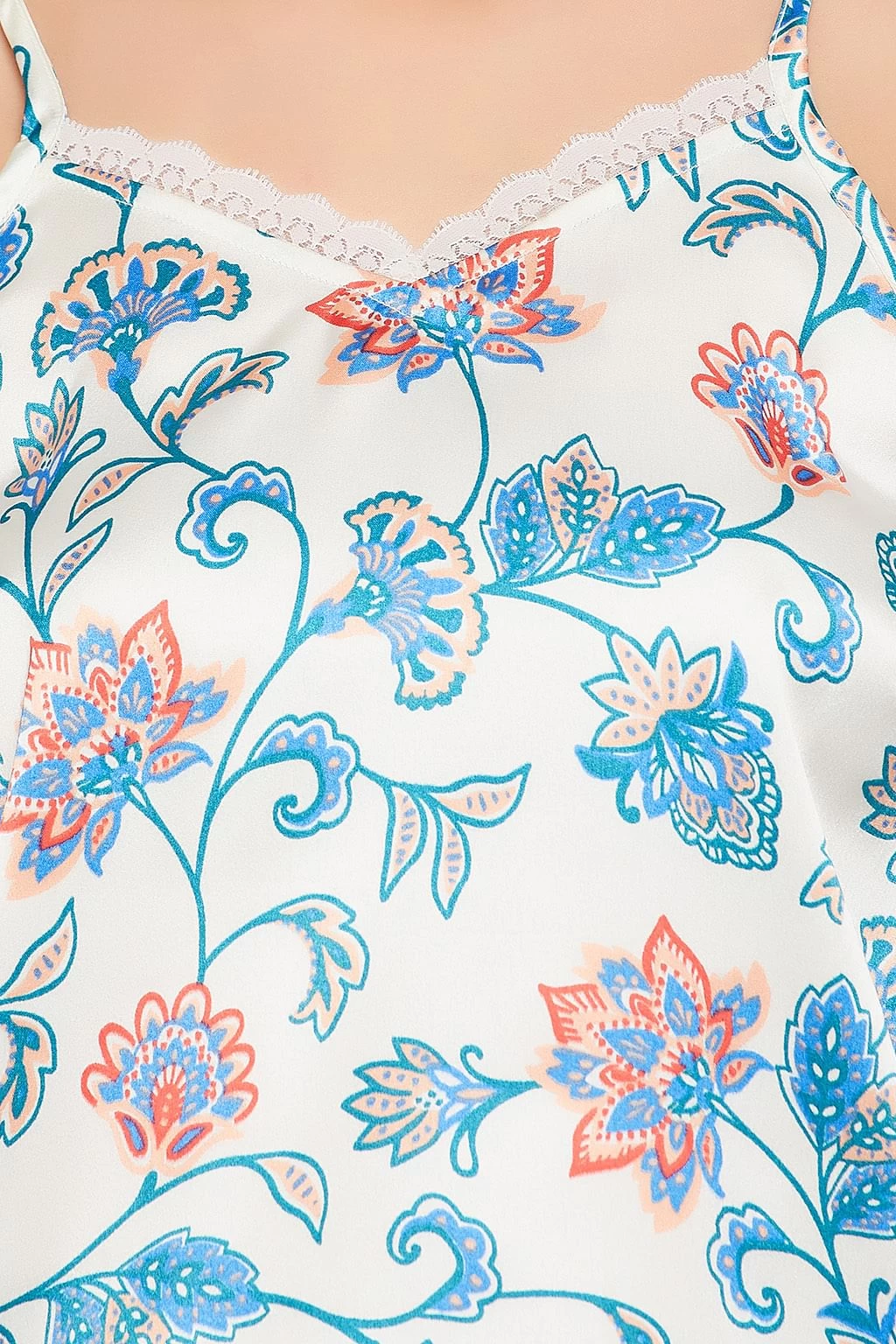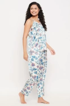 White cami top & pyjama set crafted with butter-soft comfortable satin fabric.
